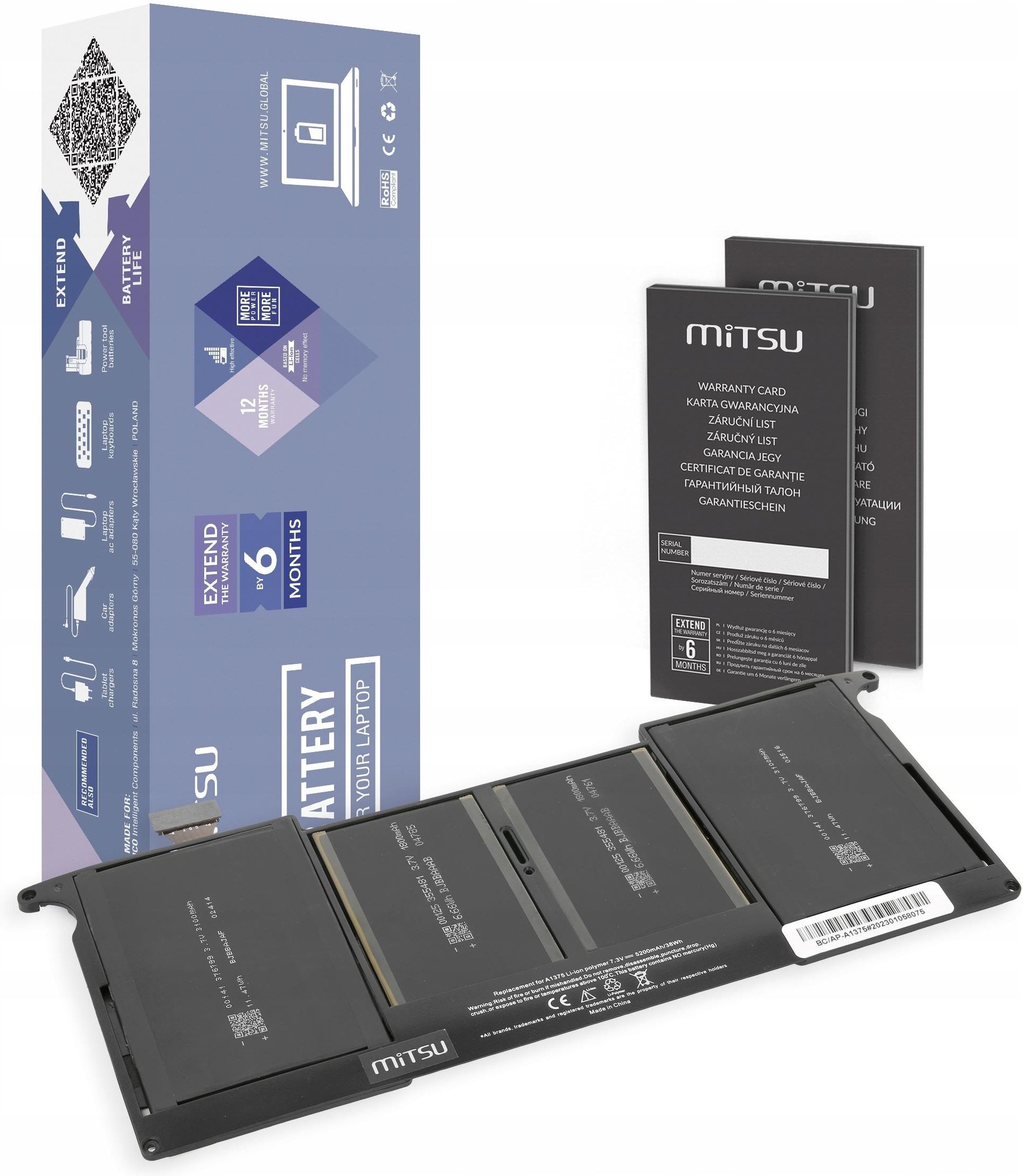 Bateria Mitsu do Apple MacBook Air 11" - A1370 (2010 r.) A1375 Mitsu - doskonały stosunek jakości do ceny pojemność: 5200 mAh (38 Wh) napięcie: 7.3V rzeczywista pojemność certyfikaty: CE i ROHS brak efektu pamięci Zbliżona do oryginału bateria Mitsu z naszej oferty to nie tylko atrakcyjna cena, to również rzetelne i niezawyżone parametry! Wysokiej klasy, sprawdzone, ekologiczne ogniwa litowo-jonowe klasy A firmy Tianneng Battery Group to realna pojemność i wysoka trwałość bez efektu pamięci. Zapewniają długi czas pracy oraz bezproblemowe funcjonowanie. Zaufaj prawdziwej jakości wyspecjalizowanego importera! W tańszych zamiennikach (i nie tylko) producent ogniw jest najczęściej ukrywany lub nieznany. Dlatego też zachęcamy do rozważnego zakupu danej baterii jako lepszej alternatywy dla wątpliwych produktów niewiadomego pochodzenia! Należy uważać na baterie o podejrzanym nazewnictwie, sugerujące wspaniałe działanie przez nieskończoną ilość godzin. Niestety w większości przypadków są to indywidualne importy, pod własną marką, bardzo często z najtańszych i najgorszych komponentów. Najwyższa jakość na rynku Prezentowane na naszej stronie baterie są wykonane z najwyższej jakości komponentów z użyciem wysokiej jakości ogniw litowo-polimerowych, posiadających szereg zabezpieczeń ochronnych przed: głębokim rozładowaniem przeładowaniem przepięciem OVP przegrzaniem OTP zwarciem SCP przeciążeniem prądowym OCP Markowa bateria to długi czas pracy urządzenia, zaoszczędzone pieniądze, dzięki długiej żywotności ogniw oraz rzadszej konieczności ich wymiany. Możesz mieć pewność pełnej kompatybilności z elektroniką i oprogramowaniem Twojego laptopa. Bateria komunikuje się z urządzeniem podobnie jak oryginał. Łatwa w montażu. To oszczędność Twojego czasu i środowiska. Certyfikaty Baterie do laptopów skierowane są do najbardziej wymagających użytkowników, ceniących sobie bezstresową i komfortową pracę. O jakości produktu świadczą uzyskane certyfikaty CE i ROHS, ISO9001oraz ścisła kontrola jakości eliminująca powstanie ewentualnych defektów. Kupując baterię MITSU możesz mieć pewność, że jednocześnie dbasz o środowisko naturalne. Producent współpracuje z organizacjami zajmującymi się ekologią, wsparciem selektywnych zbiórek oraz maksymalnym odzyskiem odpadów. Baterie MITSU to wysokiej klasy i ekologiczne ogniwa litowo-polimerowe klasy A rzeczywista deklarowana pojemność znacznie wolniejszy spadek nominalnej pojemności bardzo niska podatność na rozładowania brak efektu pamięci niezawodny i długotrwały czas pomiędzy kolejnymi cyklami ładowania 6-stopniowa kontrola jakości Zaufany producent Nasze baterie pochodzą bezpośrednio od importera, firmy ICO - właściciela uznanych marek, takich jak Movano (ogniwa klasy A+ marki Samsung i LG) oraz Mitsu, który otrzymał Laur Klienta Odkrycie Roku 2017. Dana firma posiada już wieloletnie doświadczenie i dlatego importuje wszystkie produkty tylko od sprawdzonych producentów, którzy w ofercie posiadają produkty najwyższej jakości w danym segmencie cenowym. Baterie od firmy ICO można spotkać w sklepach polskich oraz zagranicznych. CECHY PRODUKTU Bateria Mitsu do Apple MacBook Air 11" - A1370 (2010 r.) A1375 Marka produktu: Mitsu EAN: 5903050379988 Kod producenta: BC/AP-A1375 Stan: nowy Pojemnosc: 5200 mAh (38 Wh) Napięcie: 7.3V Ilość ogniw: 2 ogniwa Li-polymer Marka ogniw: Tianneng Zabezpieczenie przed: przepięciem, przegrzaniem, zwarciem, przeciążeniem prądowym, głębokim rozładowaniem oraz przeładowaniem Certyfikat: CE, ROHS W zestawie: bateria, instrukcja obsługi, karta gwarancyjna Zamiennik: A1375 Produkt jest kompatybilny między innymi z następującymi modelami urządeń (w celu łatwiejszego odnalezienia interesującego Cię modelu można skorzystać ze skrótu klawiaturowego CTRL+F, a następnie za pomocą klawiatury wpisać model) Apple MacBook Air 11 A1370 (2010), MacBook Air 11 A1370 (koniec 2010), MacBook Air 11 A1370 (late 2010), MacBook Air 11 MC505/A, MacBook Air 11 MC506/A [!id_produktu=30910!/]