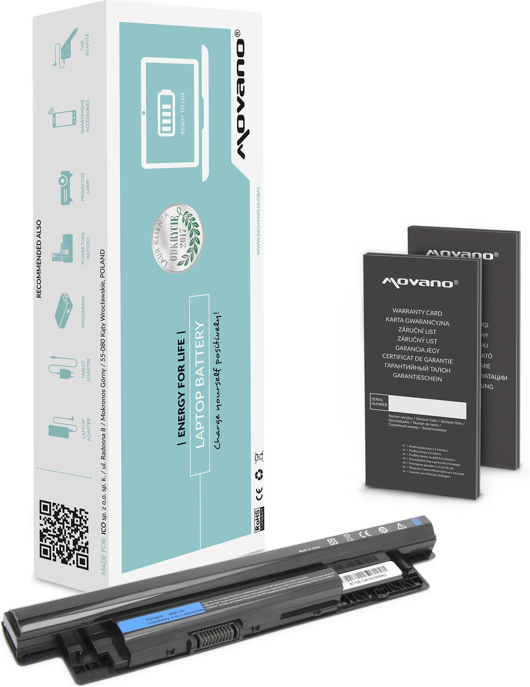 Oferta dotyczy: Bateria Movano Dell Inspiron 14, 15, 17Symbol: BT/DE-14 Parametry produktu: Gwarancja na baterię: 12 miesięcy Stan baterii: nowy Bateria pasuje do: Dell Pojemność (Wh): 49 Pojemność (mAh): 4400 Napięcie baterii (V): 11,1 Rodzaj baterii: zamiennik Produkt pasuje do modeli:Inspiron 14-3421, Inspiron 14-3437, Inspiron 14-5421, Inspiron 14-N3421, Inspiron 14-N5421, Inspiron 15 3541, Inspiron 15 3542, Inspiron 15-1546, Inspiron 15-1564, Inspiron 15-3520, Inspiron 15-3521, Inspiron 15-3537, Inspiron 1546, Inspiron 1564, Inspiron 15R-3521, Inspiron 15R-3537, Inspiron 15R-5521, Inspiron 15R-5537, Inspiron 15R-N3521, Inspiron 15R-N5521, Inspiron 15R-N5537, Inspiron 17-3721, Inspiron 17-3737, Inspiron 17-5721, Inspiron 17-N3721, Inspiron 17-N3737, Inspiron 17-N5721, Inspiron 17R-3721, Inspiron 17R-3737, Inspiron 17R-5721, Inspiron 17R-5737, Inspiron 17R-N3721, Inspiron 17R-N3737, Inspiron 17R-N5721, Inspiron 17R-N5737, Inspiron 3421, Inspiron 3437, Inspiron 3520, Inspiron 3521, Inspiron 3537, Inspiron 3721, Inspiron 3737, Inspiron 5521, Inspiron 5537, Inspiron 5721, Inspiron 5737, Inspiron 5748, Inspiron N3521, Inspiron N3537, Inspiron N3721, Inspiron N3737, Inspiron N5521, Inspiron N5537, Inspiron N5721, Inspiron N5737, Latitude 3440, Latitude 3540, Latitude E3440, Latitude E3540, Vostro 2421, Vostro 2521, 0MF69, 24DRM, 312-1387, 312-1390, 312-1392, 312-1433, 451-12097, 451-12104, 49VTP, 4DMNG, 4WY7C, 68DTP, 6HY59, 6K73M, 6KP1N, 6XH00, 8RT13, 8TT5W, 9K1VP, DJ9W6, FW1MN, G019Y, G35K4, MK1R0, MR90Y, N121Y, PVJ7J, T1G4M, V1YJ7, V8VNT, VR7HM, W6XNM, X29KD, XCMRD, XRDW2, YGMTN