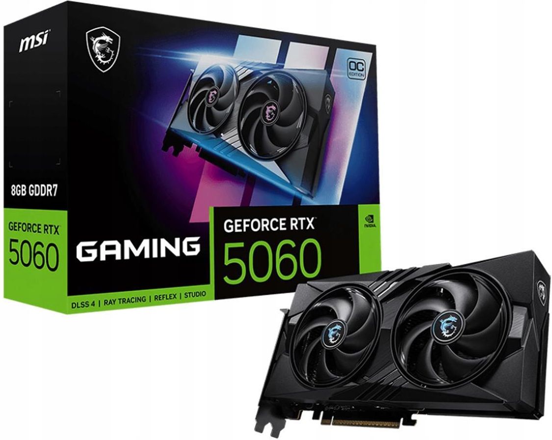 MSI GeForce RTX 5060 8G GAMING OC NVIDIA 8 GB GDDR7 MSI GeForce RTX 5060 8G GAMING OC. Rodzina procesorów grafiki: NVIDIA, Procesor graficzny: GeForce RTX 5060. Pamięć adaptera dedykowanej karty graficznej: 8 GB, Typ pamięci adaptera grafiki: GDDR7, Magistrala pamięci: 128 bit. Maks. rozdzielczość: …