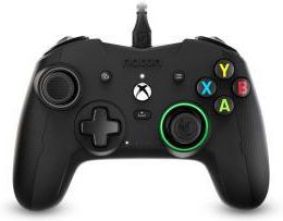NACON Revolution X Pro Controller Konfigurowalny kontroler przewodowy do serii XboxX|S, Xbox One i PC (Windows 10) 4 klawisze skrótów, które można dostosować ręcznie lub za pomocą oprogramowanie* Joysticki (ALPS) o amplitudzie, którą można zmniejszyć od 44° do 30° Akcesoria: 6x obciążniki, 2x dodatkowe zestawy drążków joysticka, 2x zestawy wymiennych głowic joysticka i twardy futerał do przechowywania Profil standardowy lub zaawansowany za pośrednictwem aplikacji Revolution X* (Sklep Microsoft): Tworzenie spersonalizowanych profili (w kontrolerze można przechowywać do 4 profili) Pełne ustawienia joysticka 4- lub 8-kierunkowy pad kierunkowy Regulacja efektów świetlnych RGB i silników wibracyjnych Gniazdo słuchawkowe 3,5 mm do audio i czatu W zestawie dostęp Dolby Atmos®* (wymagane słuchawki) 3-metrowy kabel USB w oplocie (w zestawie) * Do pobrania aplikacji Revolution X i Dolby ATMOS wymagane jest połączenie internetowe i ważne konto Microsoft. Zawiera kod do pobrania dla systemu audio Dolby Atmos 3D. Odkryj nowy poziom gier z przewodowym kontrolerem gier Nacon Revolution X Pro Controller dla Xbox One, Xbox Series i WIN 10. Kontroler ma świetne wibracje, czułe dźwignie analogowe o wydłużonej żywotności, mapowanie przycisków użytkownika i kabel o długości 3 m. Specjalnie zaprojektowany dla wyczynowych graczy, którzy wymagają wysokiej wydajności i komfortu podczas długich sesji grania: 4 skróty klawiaturowe, wymienne blaty i podstawki, miejsce na ciężarki i pełne oprogramowanie zapewniające w pełni spersonalizowane wrażenia. Oprogramowanie dostępne w Microsoft Store dla łatwej personalizacji. Dzięki oprogramowaniu Revolution X gracze mogą tworzyć własne profile gier: mapowanie przycisków, reakcje dźwigni i spustów, 4 lub 8 kierunków działania pada kierunkowego, silniki wibracyjne, ustawienia dźwięku i wiele więcej.