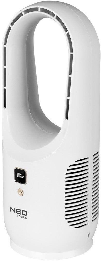 Wentylator bezłopatkowy NEO TOOLS to nowoczesne rozwiązanie zapewniające komfortowe chłodzenie w każdych warunkach. Wyposażony w akumulator o pojemności 2200 mAh, umożliwia pracę od 3 do 12 godzin, w zależności od wybranego trybu. Dzięki trzem poziomom prędkości użytkownik może dostosować siłę nawiewu do swoich preferencji. Urządzenie wyróżnia się cyfrowym wyświetlaczem, który informuje o zużyciu energii w czasie rzeczywistym, oraz energooszczędną konstrukcją, zapewniającą dłuższą pracę na jednym ładowaniu (czas ładowania: 2-3 godziny). Bezłopatkowa budowa i łuk kołowy gwarantują łagodny i równomierny przepływ powietrza, a także cichą pracę, co czyni wentylator NEO TOOLS idealnym rozwiązaniem do domu, biura czy w podróży. Zastosowanie Użytek domowy – idealny do ochłody w sypialni, salonie czy kuchni, zapewniając komfort w upalne dni. Praca w biurze – cicha praca wentylatora pozwala na komfortowe użytkowanie podczas wykonywania obowiązków zawodowych. Podróże i kempingi – dzięki akumulatorowi o długim czasie pracy (3-12h) sprawdzi się w miejscach bez stałego dostępu do prądu. Relaks na tarasie i w ogrodzie – mobilna konstrukcja pozwala na wygodne użytkowanie na świeżym powietrzu. Podczas snu – łagodny i równomierny przepływ powietrza oraz cicha praca nie zakłócają odpoczynku. Dla dzieci – bezłopatkowa konstrukcja zapewnia bezpieczeństwo użytkowania nawet w obecności najmłodszych. Zastosowania energooszczędne – niski pobór energii sprawia, że wentylator jest ekonomicznym rozwiązaniem chłodzenia. Cechy produktu wentylator bezłopatkowy, 3 prędkości, wyświetlacz cyfrowy, wyświetlanie zużycia energii w czasie rzeczywistym, konstrukcja o niskim zużyciu energii, działa podczas ładowania, łuk kołowy, łagodna siła wiatru. Zasilanie akumulatorowe, bateria 2200 mAh. Czas pracy od 3 do 12 godzin. Czas ładowania od 2 do 3 godzin.