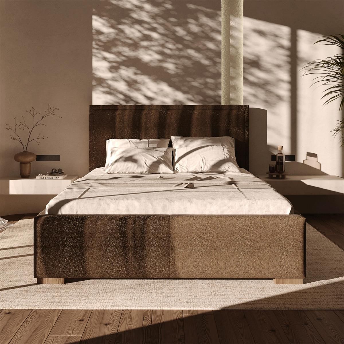 Łóżko Simple – prostota, szyk i nowoczesność w czystej postaci Wyposażając sypialnię w stylu klasycznym, można kierować się różnego rodzaju wytycznymi. Można inspirować się ulubionym okresem historycznym, na przykład renesansem lub rokoko. Możliwe jest także wybranie klasycznych mebli, cechujących się minimalizmem i brakiem urozmaiconych form. Formy te charakteryzuje symetria, tradycyjna estetyka i naturalne materiały. Łóżko Simple cechuje przede wszystkim uniwersalny, prosty i klasyczny kształt. Produkt zaspokoi oczekiwania osób lubiących standardowe, sprawdzone rozwiązania oraz funkcjonalność i wygodę. Łóżko wykonane jest z najwyższej jakości materiałów, z największą dbałością o szczegóły. Pomimo swojej klasycznej formy, szeroka rama oraz pokaźny zagłówek sprawiają, że łóżko nabiera nietuzinkowego kształtu i doskonale odnajdzie się także w nowoczesnych, kolorowych i urozmaiconych przestrzeniach. Z dodatkiem ciekawego i niecodziennego rodzaju obicia, łóżko może świetnie prezentować się także w bardzo nowatorskiej przestrzeni, z użyciem niecodziennych dodatków. Możliwy jest wybór koloru oraz rodzaju tkaniny przeznaczonej na obicie ramy i zagłówka. W ofercie posiadamy wiele rodzajów faktur i odcieni, dzięki czemu każdy znajdzie odpowiedni wzór pasujący do wystroju i charakteru sypialni. Dodatkowo, istnieje możliwość zamontowania wygodnego pojemnika na pościel, aby zadbać o wygodę i czystość w sypialni. To zapewni funkcjonalność na wysokim poziomie. Oprócz samej ramy łóżka, należy pamiętać o dostosowaniu odpowiednich elementów wypełnienia, takich jak stelaż czy materac, które uzupełnią wygląd łóżka o długi, spokojny i zdrowy sen. Aby sypialnia nabrała odpowiedniego charakteru, warto także zwrócić uwagę na dobór wyjątkowych dodatków, takich jak poduszki, kołdry, poszewki i narzuty, aby stworzyć wyśniony klimat w miejscu wypoczynku. Styl prosty i klasyczny doskonale uzupełniają takie dodatki jak drewniana podłoga oraz różnego rodzaju dekoracje. Zaprezentowany na zdjęciu model łóżka składa się z: Wezgłowie: SIMPLE wysokość 110 cm (standard 100 cm, dopłata za 10 cm), grubość 8 cm Tapicerowana rama: 160/200 cm, wysokość 35 cm (standard 25 cm, dopłata za 10 cm), grubość 5 cm Tkanina: Magic Velvet 2225, Fargotex, Grupa 2 Nóżki: Drewniane D4 dąb plantag (dopłata 50 zł/ 1 szt) oraz produktów dostępnych w naszej ofercie: Materac Curem.exe 160/200 cm Stelaż pod materac Duoflex 160x200 Ochraniacz Tempur FIT 160/200 cm, wysokość 20-25 cm Poduszka Fresh 50x70 Zdjęcia mają charakter poglądowy, rzeczywisty wygląd produktu może się nieznacznie różnić. Instrukcja montażu – łóżko tapicerowane ramowe bez pojemnika https://www.youtube.com/watch?v=H6abhGyjTBU Zobacz również: Lista łóżek dostępnych od ręki