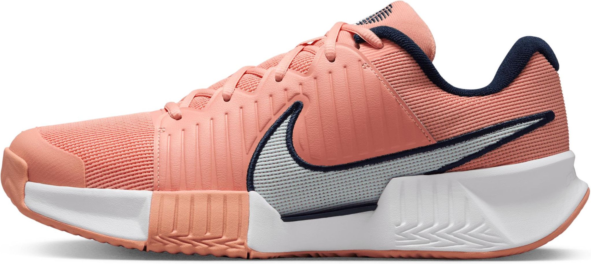 Gem. Gotowi… Mecz. Zwyciężaj w nowych butach GP Challenge Pro. Model, zaprojektowany z myślą o dynamicznych zmianach kierunku ruchu na korcie, pomoże Ci wytrzymać tempo gry do końca meczu. Jest wykonany z wykorzystaniem naszej rewolucyjnej technologii Claybreaker, idealnej do ślizgów i sprintów na kortach ziemnych. Idealne na korty ziemne:Technologia Nike Claybreaker daje lepszą przyczepność i ogranicza przywieranie osadu na kortach ziemnych. Dodatkowy bieżnik w przedniej i środkowej części buta ma szeroki wzór dający stabilność podczas ślizgów. Zaprojektowaliśmy go z użyciem map przyczepności i nacisku oraz analizy obszarów, w których gromadzi się najwięcej mączki. Bieżnik przetestowaliśmy na europejskich kortach z czerwonej mączki w różnych warunkach pogodowych (w zimne, suche i deszczowe dni).,Szybkie zwroty:Mocna plastikowa płytka w obszarze śródstopia w połączeniu z szeroką podstawą zapewnia stabilność podczas szybkich zatrzymań i nagłych zmian kierunku ruchu. Syntetyczna skóra wokół boku zewnętrznego odpowiada za stabilizację podczas ruchów na boki.,Swoboda ruchów:Dodatkowa guma w okolicy palców, szczególnie po stronie dużego palca, zwiększa trwałość tam, gdzie jest to potrzebne. Guma chroniąca przed ścieraniem biegnąca wzdłuż podeszwy zewnętrznej zapewnia trwałość i przyczepność.,Zoom, Zoom:Poduszka gazowa Air Zoom w obszarze pięty zapewnia wsparcie, a poduszka gazowa Air Zoom w przedniej części buta dodaje sprężystości.