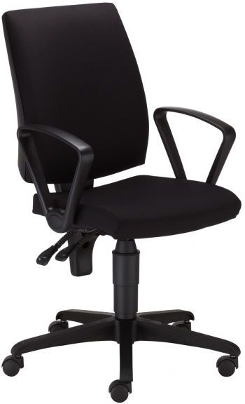 Krzesło obrotowe Nowy Styl TAKTIK Cechy: Wysokość całkowita w zależności od wyboru mechanizmu: 925-1100 mm Ergon 2L; 970-1185 mm Ergon-UP; 995-1195 mm Active-1 i Active-TR Wysokość siedziska: 380 - 510 mm Wysokość oparcia: 535 mm Szerokość siedziska: 480 mm Głębokość siedziska: 450 mm Siedzisko: tapicerowane Oparcie: tapicerowane, osłona tworzywo sztuczne Regulacja wysokości oparcia: tak Regulowana wysokość krzesła: tak Podłokietniki: bez / stałe / regulowane Podstawa: TS25-BL: pięcioramienna, materiał – tworzywo sztuczne (PA+GF), czarna Mechanizm do wyboru: Ergon 2L, Ergon-UP, Active-1, Active-TR Wybór mechanizmu wpływa na wymiary krzesła Kółka 50mm: do powierzchni dywanowych lub twardych (parkiet) Produkt posiada Atest Badań Wytrzymałościowych Remodex.