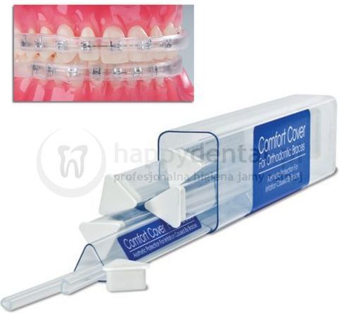 Ochraniacz Comfort Cover chroni policzki i usta przed dyskomfortem związanym z noszeniem aparatu ortodontycznego, który niesie ze sobą ryzyko ich uszkodzenia/zranienia. W szczególności zalecany jest dla osób rozpoczynających leczenie ortodontyczne, jak również w trakcie leczenia dla osób grających na instrumentach (muzykach) oraz czynnie uprawiających sport. Ochraniacz Comfort Cover jest wykonany ze specjalnie zaprojektowanego, elastycznego, przeźroczystego tworzywa (nie zawiera latexu!), które zatrzaskuje się na aparacie ortodontycznym i w całości pokrywa łuk zębowy wraz z zamkami (pasuje do zamków metalowych i kosmetycznych/porcelanowych). Łuki Comfort Cover można przyciąć nożyczkami aby dopasować je do długości łuku aparatu ortodontycznego. Zestaw zawiera dwa, przeźroczyste łuki Comfort Cover (po jednym na górny i jeden na dolny łuk zębowy), które są zapakowane w estetycznym pudełku ułatwiającym ich przechowywanie. Wystarczy umieścić ochraniacz Comfort Cover w torebce, plecaku, czy teczce i gotowe! Waga brutto: 10 g