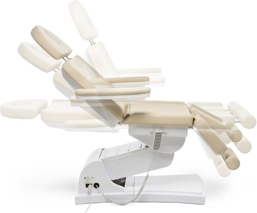 Fotel kosmetyczny ATHENA 5 - funkcyjny Fotel kosmetyczny ATHENA 5 - funkcyjny to fotel kosmetyczno-podologiczny sterowany elektrycznie, który powinien znaleźć się w każdym profesjonalnym gabinecie kosmetycznym. Dzięki zaawansowanej regulacji elektrycznej, fotel ten oferuje pełen komfort i wygodę zarówno dla klienta, jak i dla specjalisty. ATHENA 5 charakteryzuje się reprezentatywnym, nowoczesnym designem, który doskonale wpasowuje się w estetykę współczesnych gabinetów kosmetycznych. Jest to urządzenie nie tylko funkcjonalne, ale także estetycznie wykonane, co podkreśla jego profesjonalny charakter. Fotel jest wyposażony w elektryczną regulację wysokości, uchylenia fotela i oparcia oraz podnóżków, co pozwala na dostosowanie pozycji do indywidualnych potrzeb każdego klienta. Możliwość regulacji podnóżków w całości lub każdego z osobna daje dodatkową elastyczność i komfort podczas zabiegów. ATHENA 5 jest nie tylko wygodny, ale także solidny i wytrzymały, co potwierdza dopuszczalne obciążenie do 120 kg oraz moc silników 4000N. Cechy Produktu ⚡ Elektryczna regulacja wysokości: Łatwe dostosowanie wysokości fotela do potrzeb specjalisty. 🛋️ Elektryczna regulacja uchylenia fotela i oparcia: Pełen komfort dla klienta podczas zabiegów. 🦶 Elektryczna regulacja podnóżków: Możliwość regulacji podnóżków w całości lub każdego z osobna. 🎨 Nowoczesny design: Estetyczny i reprezentatywny wygląd, który wpasowuje się w każdy gabinet. 🌟 Wygoda i profesjonalizm: Ergonomiczna konstrukcja zapewniająca komfort i profesjonalizm. Zastosowanie produktu Fotel kosmetyczny ATHENA 5 jest idealny do wszelkiego rodzaju zabiegów kosmetycznych i podologicznych. Dzięki swojej funkcjonalności i wygodzie, sprawdzi się w gabinetach kosmetycznych, spa, salonach piękności oraz klinikach podologicznych. Najważniejsze składniki Silniki o mocy 4000N: Zapewniają płynną i cichą regulację wszystkich funkcji fotela. Zasilanie 24V: Bezpieczne i efektywne energetycznie zasilanie urządzenia. Wytrzymała konstrukcja: Dopuszczalne obciążenie do 120 kg, co gwarantuje długotrwałe użytkowanie. Stosowanie Fotel kosmetyczny ATHENA 5 jest łatwy w obsłudze dzięki intuicyjnemu panelowi sterowania. Regulacja wysokości, uchylenia fotela, oparcia i podnóżków odbywa się za pomocą przycisków, co pozwala na szybkie i precyzyjne dostosowanie pozycji fotela do potrzeb zabiegu. Specyfikacja techniczna Parametr Wartość Dopuszczalne obciążenie 120 kg Waga fotela 86 kg Tara 16,4 kg Moc silników 4000N Zasilanie 24V Wysokość (min) 67 cm Wysokość (max) 87 cm Długość w pozycji rozłożonej 207 cm