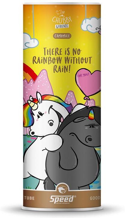 SPEED GOODIETUBE – Nie ma tęczy bez deszczu! SPEED GOODIETUBE to naturalne, bezglutenowe przysmaki z rumiankiem, które umilą każdy dzień Twojego konia. Dzięki najlepszej jakości sianu z łąk alpejskich i cennemu olejkowi rumiankowemu, są lekkostrawne i zdrowe. Praktyczne opakowanie w kształcie rogu …