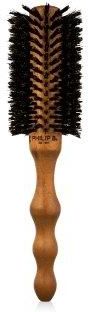 Okrągła szczotka do włosów z Philip B pozwala w mgnieniu oka wyczarować indywidualną i pięknie wypielęgnowaną fryzurę dla każdego rodzaju włosów. Pierwsze przycięte włosie dzika wzmocnione nylonem wyjątkowo delikatnie rozczesuje i układa włosy, nadając im objętość i połysk, jednocześnie bez wysiłku usuwając wszelkie pozostałości po stylizacji. Ergonomicznie zaprojektowany uchwyt wykonany z ekologicznego mahoniu doskonale leży w dłoni i zapewnia absolutną kontrolę.