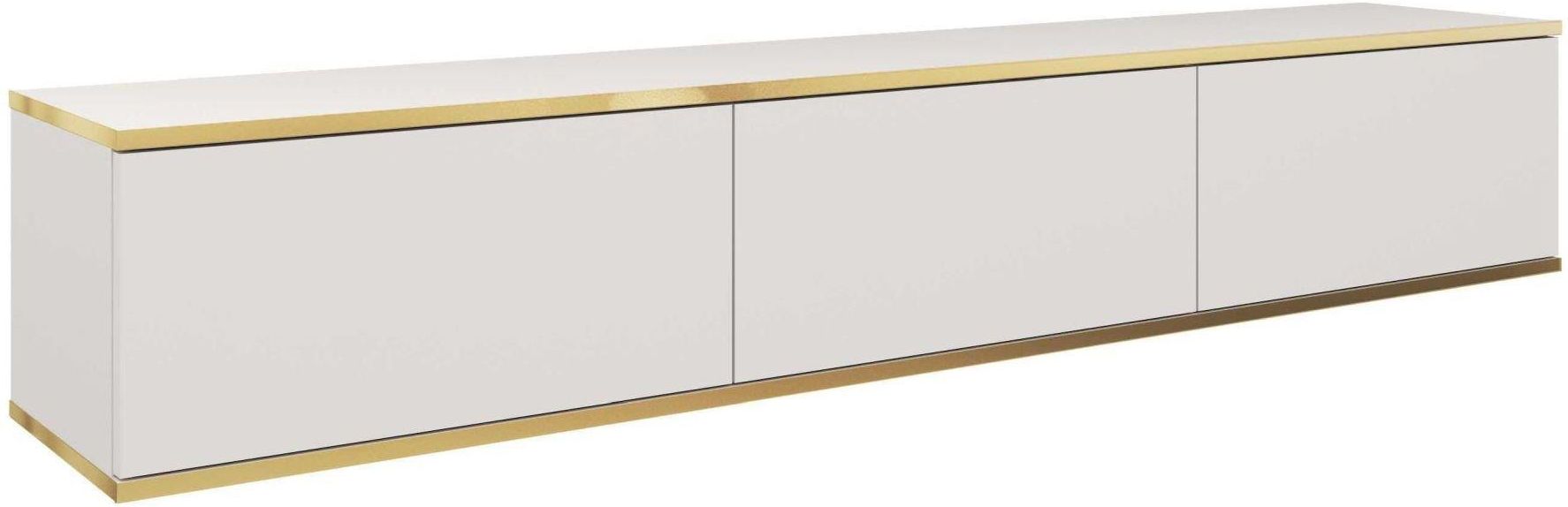 SZAFKA RTV ORO 175 ZŁOTY / BIAŁA to nowoczesny i gustowny mebel dodający salonowi elegancji i mocy wizualnej. Wykonana z wysokiej jakości płyt laminowanych i wykończona obrzeżem ABS ma 175 cm szerokości, 30 cm wysokości i 32 cm głębokości. Jej kolorystyka złota i biała pięknie współgra ze sobą. …