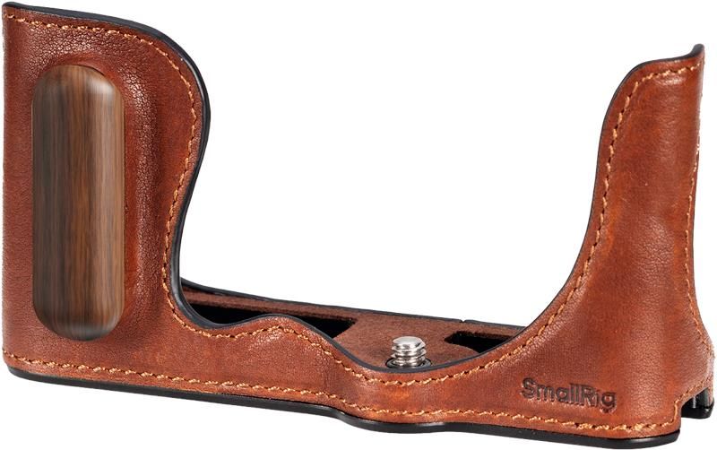 SmallRig 4703 Leather Half Case do Panasonic LUMIX S9 został zaprojektowany w celu ochrony aparatu, jednocześnie zwiększając jego ergonomie. Wbudowany drewniany uchwyt zwiększa komfort trzymania aparatu. Wytrzymały i oddychający materiał z najwyższej jakości skóry wzbogaca estetykę i styl retro aparatu, a zamszowa podszewka zapewnia ochronę przed zarysowaniami. Dzięki wbudowanej śrubie radełkowanej 1/4"-20 u podstawy, futerał mocuje się bezpośrednio do aparatu bez użycia dodatkowych narzędzi. Etui umożliwia swobodny dostęp do kluczowych funkcji aparatu, takich jak komora baterii, ekran LCD, gniazdo kart itp. Zintegrowana aluminiowa rama klasy lotniczej zapewnia dokładne dopasowanie i ochronę przed uderzeniami. W dolnej części znajduje się gwintowany otwór 1/4"-20, umożliwiający bezpośredni montaż statywu bez konieczności zdejmowania połowy obudowy. W dolnej części znajduje się otwór gwintowany 1/4"-20, umożliwiający bezpośredni montaż statywu bez konieczności zdejmowania połowy obudowy. Uwaga: Ze względu na materiał z prawdziwej skóry mogą wystąpić niewielkie różnice w kolorach. Opis produktu:Skórzane etui z drewnianą rączką dedykowane dla aparatu Panasonic Lumix S9Najważniejsze cechy: Wykonany z wytrzymałej, oddychającej skóry licowej. Wbudowany drewniany uchwyt zwiększający komfort pracy. Zintegrowany otwór gwintowany 1/4"-20 umożliwia bezpośrednie zamocowanie statywu bez konieczności zdejmowania obudowy. Waży zaledwie 67g. Zapewnia pełny dostęp do wszystkich funkcji.