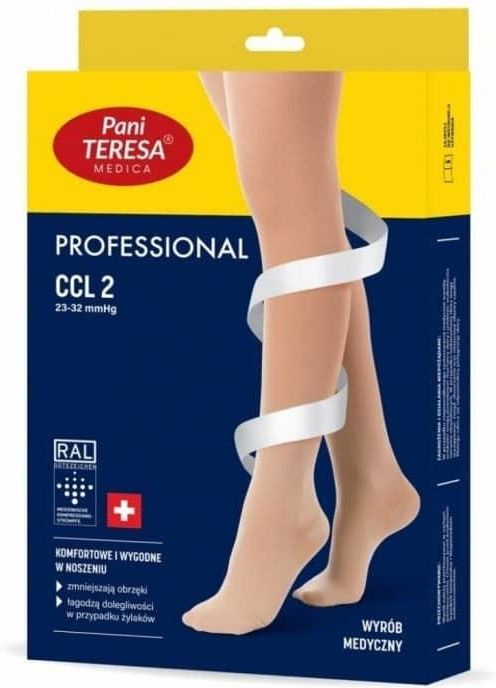 Pani Teresa Professional - pończochy uciskowe jedyne w Pani Teresie wg certyfikacji RAL CCL2 Professional to wyrób wyprodukowany dla Pani Teresy w Szwajcarii Korzystne cenowo w wyrobach certyfikowanych RAL Prosimy wybierać długość krótką pończochy do wzrostu 168 cm, bez względu na długość kończyny …