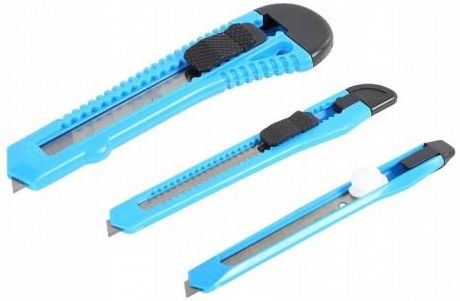 Nożyk do tapet - zestaw 3 sztuk uniwersalnyProfesjonalny zestaw noży do tapet od Mega, marki oferującej wysokiej jakości narzędzia ręczne w bardzo przystępnych cenach.Zestaw 3 nożyków do tapetw różnych rozmiarach, dzięki czemu zaspokoją potrzeby profesjonalistów i domowych remontowców. Pozwalają na bardzo precyzyjne cięcie tapet i tym samym wykonanie nawet najbardziej skomplikowanych zadań. Wykonane są z tworzywa sztucznego i metalu, dzięki czemu są niezwykle wytrzymałe.zestaw z 3 ostrzami:✔️9mm- 130 wąskich✔️9mm- 130 szerokie✔️18mm- 150Najważniejsze zalety:Zestaw noży do tapet marki MEGA zostrzem zatrzaskowym o szerokości 18 mm i 9 mm przeznaczony jest do cięcia papieru, kartonu, folii i tapet.znajdzie zastosowanie w każdym warsztacie czy magazynie.korpus noża wykonany jest z tworzywa sztucznego z blokadą ostrza.ostrza noża wykonano zjapońskiej stali, która charakteryzuje się trwałością i odpornością na stępienie.wygodna rękojeść sprawia, że nóż wygodnie leży w dłoni i łatwo prowadzi się przez materiał.ostrze noża jestwymienne - pasuje do standardowych ostrzy o szerokości 9 i 18 mm.Parametry:⚫Marka: PROLINEwysuwane ostrzezatrzaskowe: 18 mmdługość: 150 mmmetalowy pręt prowadzącyplastikowa obudowa z blokadą ostrzacena dotyczy jednego zestawu (3 szt.)Produkt dostępny w różnych kolorach. Wysyłamy losowy kolor aktualnie dostępny.