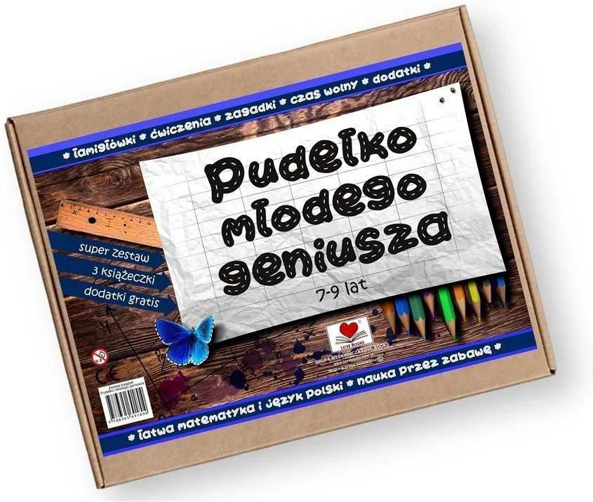 Genialny Zestaw Edukacyjny dla Dzieci 7-9 lat Prezentowany tutaj Genialny Zestaw Edukacyjny dla Dzieci 7-9 lat to fantastyczna propozycja dla wszystkich młodych odkrywców. Umieszczony w eleganckim pudełku, które jest doskonałym opakowaniem na prezent. Zestaw składa się z trzech barwnych książeczek przeznaczonych dla uczniów w wieku wczesnoszkolnym. Wspólne nauka i zabawa to najlepszy sposób na inspirujące poznawanie świata i zdobywanie wiedzy. Książeczki stanowią nieocenione materiały edukacyjne wspomagające zrozumienie podstawowych zagadnień z matematyki i języka polskiego. Dopełnieniem każdej z nich są atrakcyjne łamigłówki i zagadki do rozwiązania oraz różnorodne ćwiczenia. Dzięki temu zestawowi, dzieci nabiorą zamiłowania do zajęć szkolnych i nauki w domu. Interaktywny format książeczek z pewnością przekona małych geniuszy, że nauka przychodzi przez zabawę. W skład zestawu wchodzą również kredki i inne kreatywne dodatki, które pobudzają wyobraźnię malucha. Wymiary eleganckiego pudełka to 25x35 cm. Ochronna folia gwarantuje, że prezent dotrze do Ciebie w nienaruszonym stanie. EAN: 9788365691804