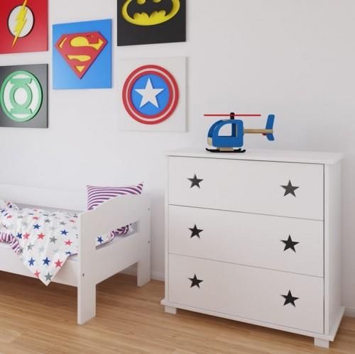 Przedstawiamy Państwu funkcjonalną, pojemną i niesamowicie praktyczną komodę STARS. Komoda STARS to rewelacyjnie prezentuje się w pokoju dziecięcym i młodzieżowym. Komodę wyróżnia najwyższa jakość wykonania oraz ciekawy design. WŁAŚCIWOŚCI: kolor: biel komoda z 3 szufladami wycięcia w kształcie …