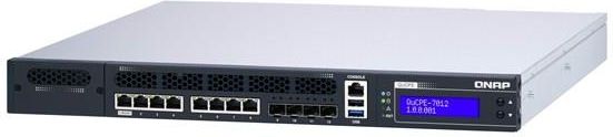 QNAP QuCPE-7012. Processor manufacturer: Intel, Processor family: Intel® Xeon® D, Processor model: D-2166NT. Internal memory type: DDR4, Internal memory: 32 GB, Maximum RAM supported: 256 GB. Supported storage drive types: HDD & SSD, Supported storage drive interfaces: Serial ATA II, Serial ATA III, Storage drive sizes supported: 2.5". Ethernet LAN data rates: 1000,2500,100,10000 Mbit/s. Fiber optic connector: SFP+, Console port: RJ-45/USB Type-A