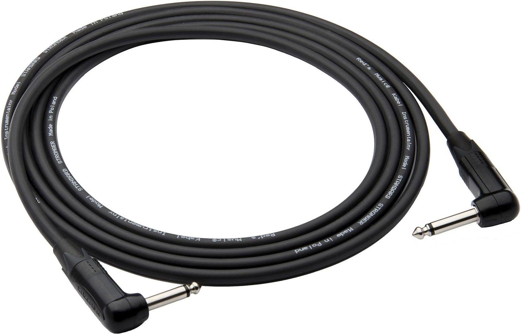 Przewody firmy Reds Music są wykonywane ręcznie w Polsce, a każdy kabel jest testowany za pomocą testerów co zapewnia 100% sprawności w połączeniu. Każdy przewód posiada zabezpieczenie chroniące go przed wyrwaniem. Styki lutowane są w sposób zapewniający nierozłączność kabla i wtyku. Do lutowania zastosowano bezołowiową cynę z dodatkiem miedzi i srebra. Znajdująca się w środku przewodu najwyższej jakości miedź beztlenowa, zapobiega powstawaniu procesów korozyjnych. Bardzo mocna powłoka kabla wykonana z elastycznego polimeru jest trwała i odporna na przetarcia. STUDIO Kabel Instrumentalny/Gitarowy, 2,0m jack kątowy / jack kątowy: Zbudowany na bazie kabla INS 101 Średnica zewnętrzna fi 7.0 mm Żyła 1 x 0,5mm² Dwa miedziane ekrany w oplocie krzyżowym Dodatkowy ekran w postaci przewodzącego PVC Miedź beztlenowa Bardzo wysoka odporność na ścieralność i uszkodzenia mechaniczne Dla najbardziej wymagających użytkowników Bezstratne przenoszenie dźwięków Lutowanie przy użyciu cyny bezołowiowej z domieszką srebra Światowej klasy wtyki NEUTRIK Każdy kabel został wyposażony w rzep do spinania aby ułatwić prawidłowy transport. Zastosowany model wtyków: Neutrik NP2RX-BAG Jack kątowy