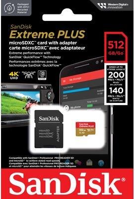 SanDisk microSDXC 512 GB EXTREME PLUS 200/140MB/s V30 A2 UHS-3 Korzystaj z ogromnej prędkości dla błyskawicznego przesyłania danych, szybkiego działania aplikacji i filmów w jakości 4K UHD.2 Ta wysoce wydajna oraz doskonała do smartfonów z systemem Android™, kamer sportowych i dronów karta microSD …