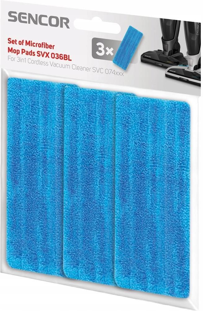 Zestaw Mopów SVX036BL do Odkurzacza Sencor SVC074X Innowacyjny zestaw mopów z mikrofibry, który rewolucjonizuje proces sprzątania. Renomowany producent Sencor, model SVX 036BL kompatybilny z urządzeniem SVC 074x tej samej marki. Jest to wyjątkowe rozwiązanie dla osób, które cenią sobie skuteczność, wygodę i jakość w procesie utrzymania czystości. Dzięki zaawansowanym technologiom i starannie zaprojektowanej konstrukcji, ten zestaw zapewni Ci doskonałe rezultaty czyszczenia każdego dnia. Efektywne czyszczenie | Wysokiej jakości mikrofibra | Skuteczność Właściwości i parametry techniczne Producent: Sencor Model: SVC 036BL Rodzaj produktu: zestaw nakładek do mycia ( mopów ) Typ: wielokrotnego użytku Materiał: mikrofibra Ilość w opakowaniu: 3szt Współpracuje z produktem: SVC 074x Efektywne czyszczenie bez chemii Dzięki wyjątkowej strukturze mikrofibry, zestaw mopów Sencor SVX 035BL pozwala na skuteczne usuwanie brudu bez konieczności stosowania agresywnych środków chemicznych. To przyjazne dla środowiska rozwiązanie, które pomaga w utrzymaniu czystości w domu bez negatywnego wpływu na zdrowie i środowisko. Dzięki efektywności czyszczenia użytkownik oszczędza czas oraz energię potrzebną na wyjątkowo skuteczne sprzątanie. Zaawansowana mikrofibra Mopy w zestawie wykonane są z wysokiej jakości mikrofibry, która doskonale zbiera zanieczyszczenia, kurz, plamy i zabrudzenia nawet z najtrudniejszych powierzchni. Mikrofibra jest delikatna dla różnych rodzajów podłóg, nie powodując ryzyka zarysowań.Dzięki gęstej strukturze skutecznie zbiera nawet najdrobniejsze cząsteczki kurzu oraz alergenów. To niezwykle istotne dla osób cierpiących na alergie.