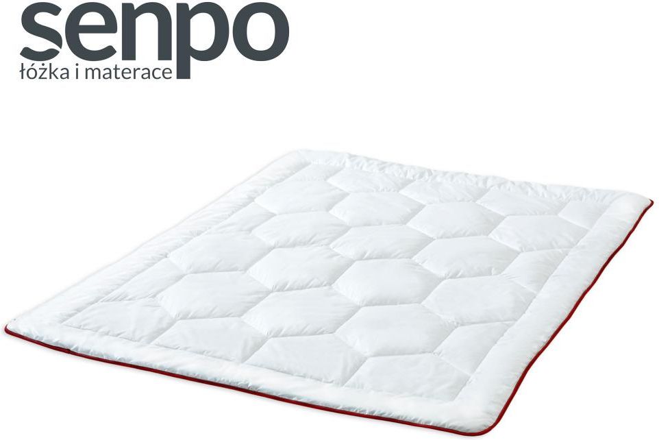 SENPO Thermo Control 2.0 - antyalergiczna kołdra zapobiegająca przegrzaniu Nowa kołdra z kolekcji termoaktywnej Senpo dedykowana osobom poszukującym wysokiej jakości. Kołdra jest lekka, miękka i przewiewna, a przede wszystkim aktywnie wspiera termoregulację ciała w czasie snu. W skład tkaniny poszyciowej wchodzi mieszanka włókien bawełnianych oraz Outlast, które tworzą trwały batystowy splot. Wypełnienie stanowi syntetyczne włókno Outlast, które pierwotnie wykorzystywano na potrzeby kombinezonów kosmicznych przez NASA. Jego główną cechą jest optymalizacja temperatury organizmu. Odbywa się to dzięki mikrokapsułkom wtopionym we włókno, w których zamknięto materiał przemiany fazowej – PCM. Kuleczki te mogą chłodzić lub grzać zależnie od potrzeb. Kołdra Thermo Control 2.0 dostępna w czterech rozmiarach oraz dwóch wersjach izolacji termicznej - całorocznej oraz letniej. Materiały użyte do produkcji kolekcji posiadają certyfikat Oeko-Tex, dzięki temu nadaje się dla alergików. Dlaczego warto wybrać kołdrę Thermo Control 2.0 Senpo? termoregulacyjne włókna Outlast dla optymalnych warunków podczas snu 2-letnia gwarancja producenta możliwość prania w temperaturze do 60°C posiada certyfikat Oeko-Tex Standard Kołdra Thermo Control 2.0 specyfikacja Dostępne kolory – biały Tkanina – bawełna 64%, Outlast 36% Szycie i wykończenie – kołdra pikowana wykończona lamówką Wypełnienie – włókno Outlast 100% Pielęgnacja – można prać w temperaturze do 60°C Letnia: 135×200 – 550g, 155×200 – 600g, 220×200 – 900g, 220×240 – 1100g Całoroczna: 135×200 – 1000g, 155×200 – 1120g, 220×200 – 1600g, 220×240 – 1900g Rozmiary standardowe 135×200 cm 155×200 cm 220×200 cm 240×220 cm