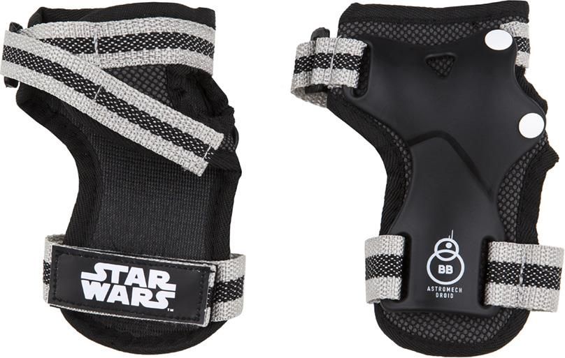 licencja STAR WARS Podczas nauki skatingu ważne jest to aby się nie zrazić po nieudanej próbie jazdy lub wykonania triku. Aby zminimalizować ryzyko kontuzji czasem niosącej za sobą niechęć do dalszej nauki należy wyposażyć się w sprzęt ochronny. Podczas upadku najbardziej narażone są dłonie i nadgarstki - dlatego stworzono anatomiczne ochraniacze osłaniające tę część ręki. Ochraniacze wykonano z połączenia twardej syntetycznej skorupy amortyzującej uderzenie i zapobiegajacej otarciu oraz miękkiej wyściółki poprawiającej komfort noszenia. Ochraniacze są regulowane paskami na rzep gdyż lepsze dopasowanie to skuteczniejsza ochrona. Szczególnym atutem ochraniaczy jest kolorystyka i wzór nawiązujący do filmu Star Wars - dodatkowo zachęcający do ubrania kompletu. Opis: materiał: poliuretan nylon wymiary: 14x9 cm zapinane na paski z rzepami anatomiczny kształt dopasowany do ręki chronią przed otarciami i zmniejszają ryzyko urazu posiadają certyfikat bezpieczeństwa EN 14120 licencjonowany wzór ze Star Wars