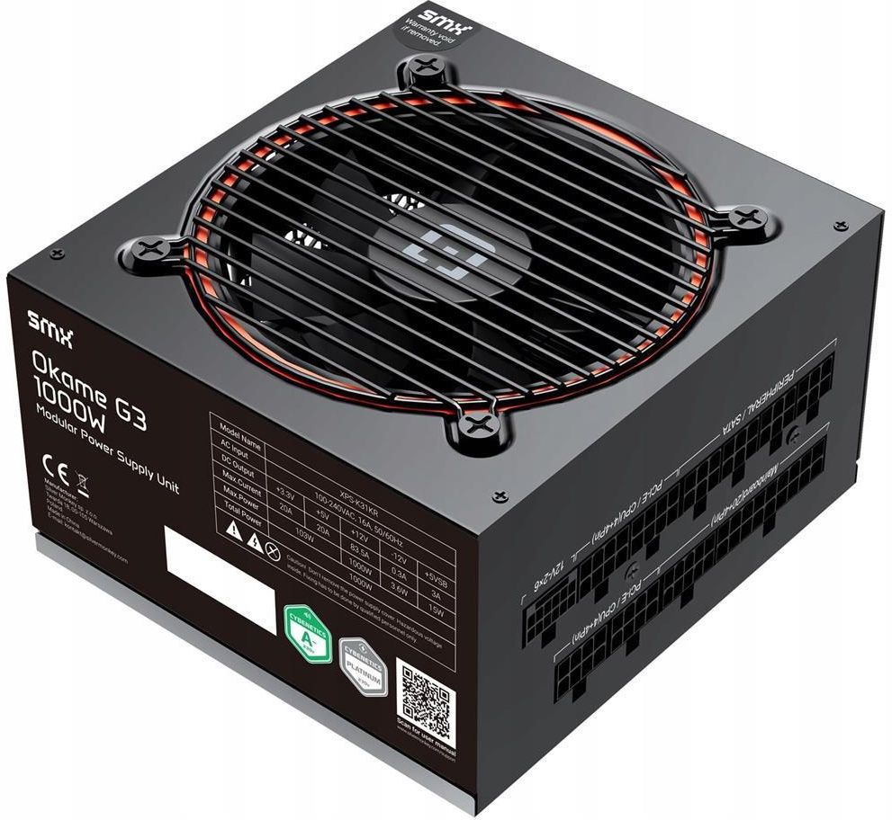 SMX Okame G3 1000W ATX 3.1 XPS-K31KR Towar fabrycznie nowy. Oryginalnie zapakowany. Polska dystrybucja. Moc:1000 W Standard:ATX 3.1 Sprawność:91-93% przy 230V Certyfikat:80 PLUS Platinum, Cybenetics Platinum Wysoka sprawność potwierdzona certyfikatem Cybenetics Platinum Certyfikat na poziomie …