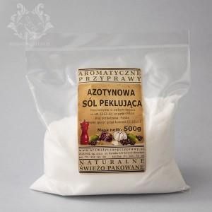 Azotynowa sól peklująca ⭐⭐⭐⭐⭐ Peklosól (czyli sól peklująca) to mieszanina soli kuchennej (NaCl) i azotynu sodu (NaNO ). Stosowana jest głównie w przetwórstwie mięsa. Jej zadaniem jest konserwacja mięsa, nadanie mu charakterystycznego koloru oraz ochrona przed rozwojem bakterii. Producent: Inowrocławskie Kopalnie Soli "Solino" S.A. Skład: sól, azotyn sodu E250, substancja antyzbrylająca E536 max 20mg/kg Zastosowanie: do peklowania mięsa oraz przetworów mięsnych, kiełbas Masa netto: 500g ⭐⭐⭐⭐⭐ Główne zastosowania peklosoli: Peklowanie mięsa Stosowana do konserwacji mięsa przed obróbką cieplną (np. wędzeniem, gotowaniem, pieczeniem). Peklowanie może być: na sucho – nacieranie mięsa mieszanką peklosoli, na mokro – moczenie mięsa w solance z peklosolą, kombinowane – połączenie obu metod. Wędliny i kiełbasy Używana w produkcji szynek, kiełbas, boczku, kabanosów itp. Nadaje mięsu różowoczerwony kolor (zamiast szarego, jak przy zwykłej soli), Zapewnia charakterystyczny smak i trwałość. Kiełbasy: posypać w stosunku 2,2% do masy farszu (22g na 1 kg mięsa) i trzymać tak przez 24 godziny. Nie dodawać soli. Szynki: najlepiej moczyć w solance o roztworze 10% (500g na 5 litrów wody) przez okres 3-4 dni w temperaturze ok +6 stopni Celsjusza. 3. Przechowywanie i przedłużenie trwałości Azotyn sodu działa jako środek konserwujący – spowalnia rozwój bakterii i psucie się mięsa. Szczególnie istotne przy przechowywaniu mięsa w warunkach domowych i przemysłowych. Ważne uwagi: Nie używa się peklosoli do bezpośredniego solenia potraw! Jest to produkt techniczny do obróbki mięsa, nie przyprawa stołowa. Dawkowanie musi być dokładne – nadmiar azotynów może być szkodliwy. Peklosól nie nadaje się do surowych produktów spożywanych bez obróbki cieplnej Peklosól pakowana jest w przezroczyste zgrzewane woreczki z foli posiadającej atest dopuszczający ją do kontaktu z żywnością. Przechowywać w suchych pomieszczeniach. Uwaga: Produkt nie nadaje się do bezpośredniego spożycia.