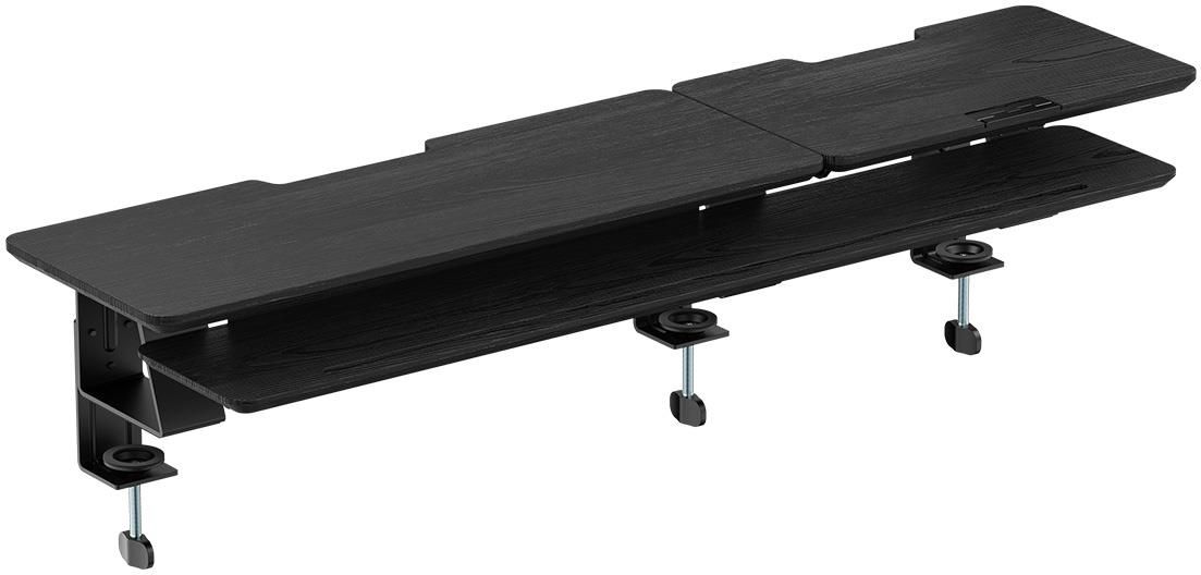 Regulowana półka nad biurko Spacetronik HUGEL 13Chcesz uporządkować przestrzeń wokół siebie? Chcesz, by wygodniej Ci się pracowało? W takim razie regulowana półka Spacetronik HUGEL 13 może być stworzona właśnie dla Ciebie! Została podzielona na 3 osobne części, z czego jedna z nich pozwala Ci na regulację kąta nachylenia. Jednak to dopiero początek. Odkryj wszystkie zalety, jakie czekają na Ciebie przy półce HUGEL 13! Półka nad biurko do monitora Spacetronik HUGEL 13 - Najważniejsze cechy- Komfort: Pracuj wygodnie, mając wszystkie najpotrzebniejsze przedmioty blisko siebie. - Dopasowanie do Twoich potrzeb: Ustaw ruchomą część półki pod takim kątem, jakim tylko chcesz. - Styl i wytrzymałość: Minimalistyczny i uniwersalny czarny kolor. Wykonana ze stali i płyty pilśniowej. - Funkcjonalność: Trzymaj na niej książki, monitor, tablet czy też laptopa.Dwupoziomowa nowoczesna półka na wszystko, czego potrzebujeszW celu zapewnienia Ci jak największego komfortu pracy półka Spacetronik HUGEL 13 zapewnia Ci aż dwa poziomy. Dzięki temu na pierwszym będziesz mógł trzymać np. monitor i laptopa, a na dolnej telefon, tablet, książki czy też notesy. Z łatwością będziesz w stanie przechowywać na niej wszystko to, co jest Ci potrzebne do komfortowej pracy. Półka Spacetronik została wyposażona w specjalny, regulowany fragment dzięki, któremu jeszcze bardziej zwiększa się jej funkcjonalność. Możesz regulować go w zakresie 0-55deg;. Dzięki temu, jeżeli chcesz, możesz ustawić ją na płasko i trzymać na niej monitory lub też książki. Jednak jeżeli masz inne plany, to możesz ją postawić bardziej pionowo i stworzyć miejsce, chociażby tablet lub laptopa.Stylowy design z przywiązaniem do detaliCiesz się w pełni wszystkimi zaletami, jakie zapewnia Ci półka Spacetronik HUGEL 13. Wszystko dzięki tym małym detalom, w które została ona wyposażona. Na regulowanej części znajduje się specjalna blokada. Sprawi ona, że po ustawieniu kąta 55deg; położony na niej przedmiot (książka, laptop, tablet) nie spadnie na ziemię. Dzięki temu możesz ustawić ją idealnie, tak jak chcesz. Co więcej, dolna półka została wyposażona w wygodną, uniwersalną rynienkę. Będziesz mógł w niej trzymać zarówno swój telefon, jak i tablet. Trzymaj je zawsze pod ręką i to w taki sposób, żeby cały czas widzieć ich ekran. Dzięki temu Twoja przestrzeń do pracy stanie się jeszcze bardziej wielofunkcyjna. W tym samym momencie będziesz mógł wyświetlać potrzebne Ci informacje na monitorze, laptopie, tablecie i telefonie. Twoje biurko zamieni się w profesjonalne wielofunkcyjne miejsce pracy z dużą przestrzenią do przechowywania.Łatwy montaż - Bezproblemowo zmieniaj lokalizację półki Spacetronik HUGEL 13Półkę do biurka przymocujesz z łatwością za pomocą 3 zacisków. Takie rozwiązanie nie tylko zapewni Ci odpowiednią stabilność. Sprawi ono również, że półkę będziesz mógł szybko i bez problemu przenosić z jednego miejsca w drugie. Co ważne, nie pozostawiając po tym żadnych większych śladów użytkowania.Uporządkuj przestrzeń wokół siebie z biurowym akcesorium HUGEL 13Dzięki tak szerokiemu wachlarzowi zastosowań będziesz w stanie uporządkować przestrzeń wokół siebie. Wszystkie sprzęty elektroniczne, notesy, dokumenty będziesz w stanie utrzymywać w porządku, jednak wciąż pod ręką dostępne zawsze wtedy, gdy ich potrzebujesz. Co więcej, jest ona kompatybilna z różnymi uchwytami na monitor. Również takimi, które zapewniają różnego rodzaju rozwiązania pozwalające na schludne prowadzenie przewodów. Dzięki temu wszystkiemu Twoje biurko będzie bardziej uporządkowane, a ty skupisz się w pełni na pracy czy też rozrywce.Zadbaj o swoje zdrowie z minimalistyczną półką Spacetronik HUGEL 13Dzięki zastosowaniu półki Spacetronik HUGEL 13 będziesz mógł trzymać swój monitor na podwyższeniu. Jest to o tyle istotne, że monitor powinien się zawsze znajdować na wysokości Twojego wzroku. Dzięki temu nie będziesz musiał unosić głowy cały czas w górę ani opuszczać w dół. Przyjmiesz bardziej naturalną pozycję ciała, pozbawioną niepotrzebnych napięć mięśniowych. Tym samym unikniesz bóli szyi, karku, ramion czy też pleców. Stosując półkę Spacetronik HUGEL 13 zadbasz o swoje zdrowie.Specyfikacja techniczna: Kolor: Czarny, Wymiary: 1060×275×296 mm, Ilość półek: 3, Udźwig maksymalny: 35 kg, Zarządzanie przewodami: Tak, Kąt nachylenia: 0-55deg;, Materiał: Stal, płyta pilśniowa MDF, Rynna na telefon/tablet: Tak, Blokada do laptopa: Tak.