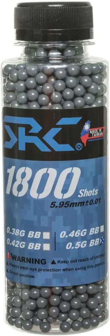 Wysokiej jakości szare kulki ASG o wadze 0,5 g i średnicy wynoszącej 5,95 mm zapakowane w praktyczne opakowanie - butelkę o pojemności 1800 szt.