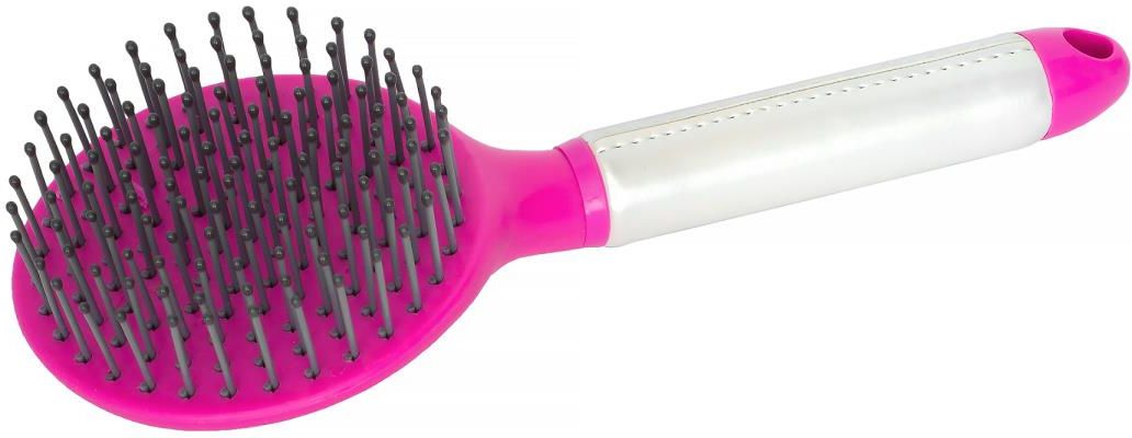 Szczotka do grzywy START Holo to nowoczesne narzędzie przeznaczone do pielęgnacji grzywy i ogona konia, łączące funkcjonalność z atrakcyjnym wyglądem. Charakteryzuje się wyrazistym kolorem i ergonomicznym kształtem, który zapewnia wygodę i efektywność w użytkowaniu. Szczotka jest wyposażona w elastyczne, zaokrąglone końcówki na włoskach, które delikatnie rozczesują włosy, minimalizując ryzyko ich uszkodzenia lub wyrwania. Długa rękojeść szczotki umożliwia łatwy chwyt, co jest szczególnie ważne przy długotrwałym użytkowaniu, a otwór na końcu rękojeści pozwala na wygodne przechowywanie. Szczotka do grzywy START Holo jest nie tylko praktyczna, ale także stylowa, co czyni ją doskonałym wyborem dla każdego właściciela konia dbającego o estetyczny wygląd swojego zwierzęcia.