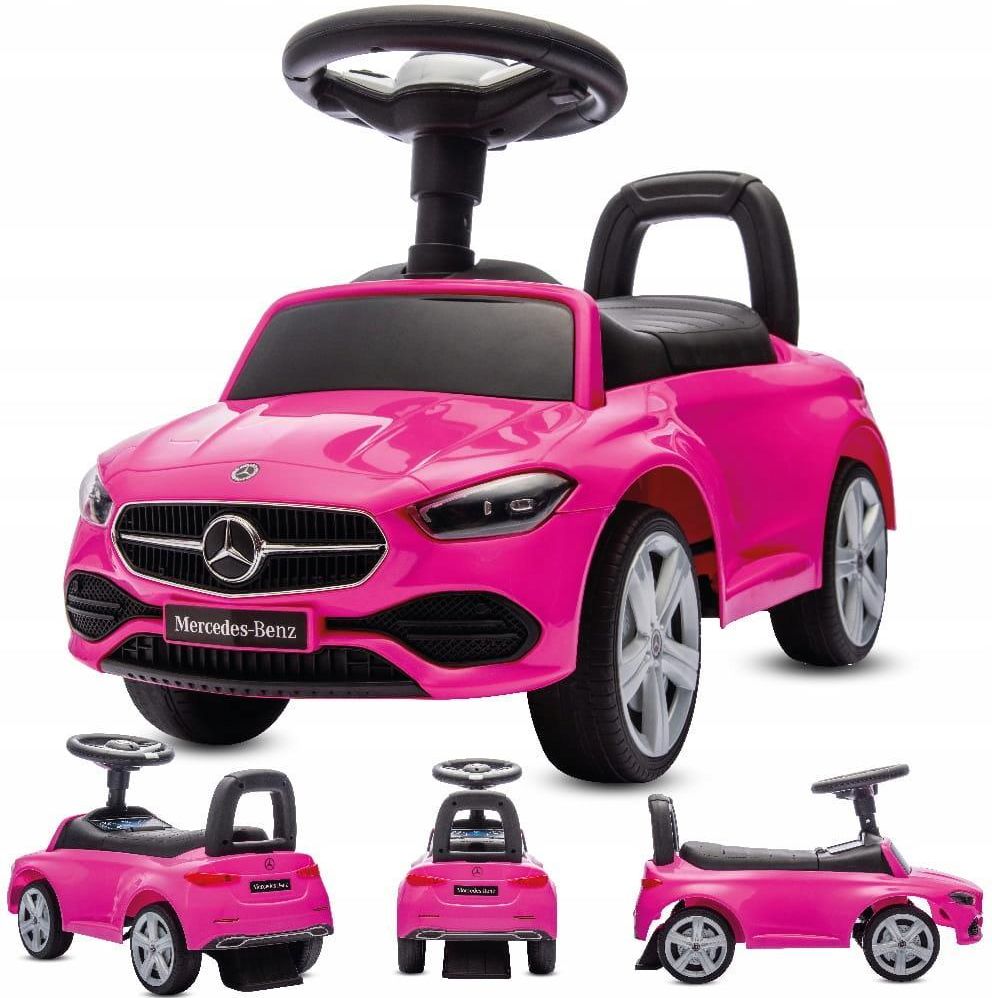 Jeździk pchacz chodzik dla dzieci Mercedes C-Class różowy Cechy produktu wiek: 12m+ wymiary: długość: 65 cm, szerokość: 30 cm, wysokość kierownicy mierzona od podłoża: 36 cm, wysokość siedziska mierzona od podłoża: 22 cm, wysokość oparcia mierzona od podłoża: 32 cm kierownica z dźwiękiem siedzisko …