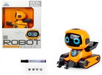 Robot sterowany – line-following robot w kolorze pomarańczowym, który podąża za linią. Zestaw zawiera robota, pisak i baterie. Robot świeci kolorowym światełkiem i wydaje dźwięki. Zabawka działa na baterie typu AG13. Baterie są załączone do zabawki. Całość zapakowana w kartonowe pudełko. Podane …