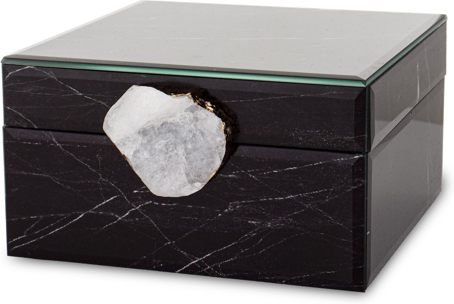 Szkatułka Na Biżuterię Szkatułki, Ramki i Tace / Szkatułki i ramki Casablanca Rozmiar: 8,5x17x15,5 Pakowanie: 12/1 Waga: 0.93 kg Materiał: mdf, szkło, agat Kolor: czarny, biały