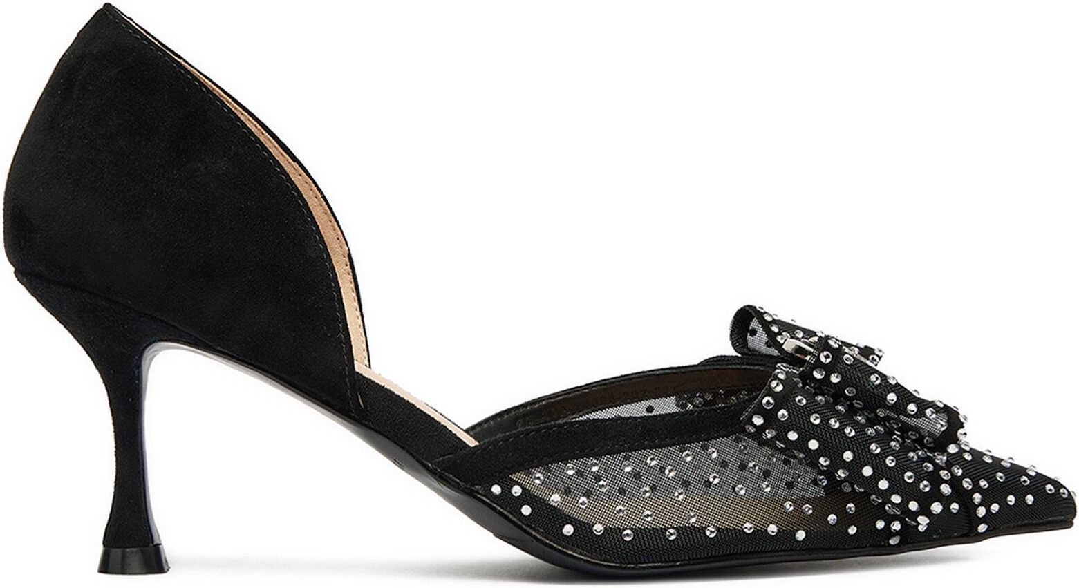 Dodaj elegancji swojej stylizacji dzięki wyjątkowym szpilkom od marki Eva Minge. Wykonane z wysokiej jakości materiału włókienniczego, łączą w sobie szyk i wygodę. Szpiczasty nosek nadaje im niezwykłej klasy, a ozdobne kokardy i lśniące cyrkonie przyciągają spojrzenia i dodają wyrafinowanego blasku. Smukła szpilka podkreśla sylwetkę, dodając jej lekkości i subtelności. To idealny wybór na wyjątkowe okazje, kiedy chcesz poczuć się pewnie i olśniewać swoim wyglądem. Postaw na szpilki Eva Minge i zyskaj idealny dodatek do każdej eleganckiej kreacji!