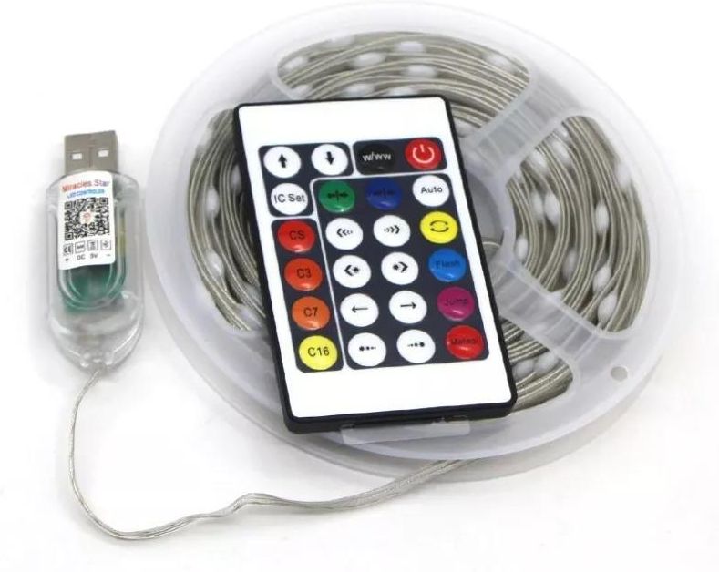 Taśma led RGBIC WS2812B dreamcolor to taśma z diodami adresowanymi indywidualnie. Każda dioda taśmy jest niezależnym elementem i może mieć inny kolor światła od pozostałych. Efekty świetlne są po prostu niesamowite. Całość ma długość 10m (100 punktów świetlnych) zasilanie 5V z ładowarki/portu USB. Zestaw taśma led Gosund Inteligentna Taśma Led Dreamcolor ze sterownikiem posiada wiele zaprogramowanych funkcji i trybów pracy. Można sterować z aplikacji, z pilota lub zmieniać tryby guziczkiem na sterowniku. Wbudowany w sterownik mikrofon umożliwia swobodną pracę z nagłośnieniem w pomieszczeniu. Sterowanie z aplikacji odbywa się za pośrednictwem bluetooth. Taśma świetnie sprawdzi się jako lampki choinkowe, na imprezach, nadaje się do dekoracji pomieszczeń czy wystaw sklepowych. Można też ułożyć w literki i zaprogramować dowolny kolor napisu. Cechy: wiele zaprogramowanych opcji świecenia, sterowanie dźwiękiem możliwe z wbudowanego mikrofonu lub za pośrednictwem aplikacji bluetooth. W pierwszym przypadku taśma reaguje bardo dynamicznie, a przy sterowaniu z bluetooth jest to raczej efekt uspokajający :) możliwość indywidualnego dostosowania poszczególnych diod - adresowanie indywidualne, zasilanie z portu/ładowarki USB, sterowanie aplikacją lub pilotem, wiele zastosowań DIY Dane techniczne taśmy: Typ LED: ICRGB z wnętrznym IC WS2812B, Liczba LED:10 diody led/mb razem 100, Długość paska: 10m, Zasilanie: 5v Klasa ochrony: IP65-wodoodporna - TYLKO TAŚMA - STEROWNIK JUŻ NIE :( Temperatura pracy: od-20 do 50 ° 10. Kąt widzenia: 360 ° Kolory: pełny kolor RGB, zmiana koloru dowolna Zastosowanie: Reklamach - znaki świetlne, litery przestrzenne, Dekoracjach świątecznych jako sznur lampek choinkowych, Oświetleniu bezpieczeństwa, Oświetlenie gzymsów, wnęk, faset, schodów, luster, mebli, szklanych blatów, Oprawach meblowych pod szafki i półki, Oprawach przeznaczonych do montażu w ścianach lub w podłodze (np. dyskotek, teatrów, telewizji, restauracji, barów, kasyn) Uwagi: programowanie indywidualne możliwe tylko z dołączonego pilota (opcja dla cierpliwych), złącze USB jest tylko i wyłącznie do zasilania (nie ma co szukać sterowników gdyż piny danych wiszą w powietrzu, a szkoda), sznur jest wodoodporny - sterownik niestety nie! aplikacja do sterowania nazywa się "Miracles.Star" i jest do pobrania z Google Play lub App Store zestaw zawiera: szpulkę z taśmą WS2812B (10mb), sterownik pilot zdalnego sterowania.