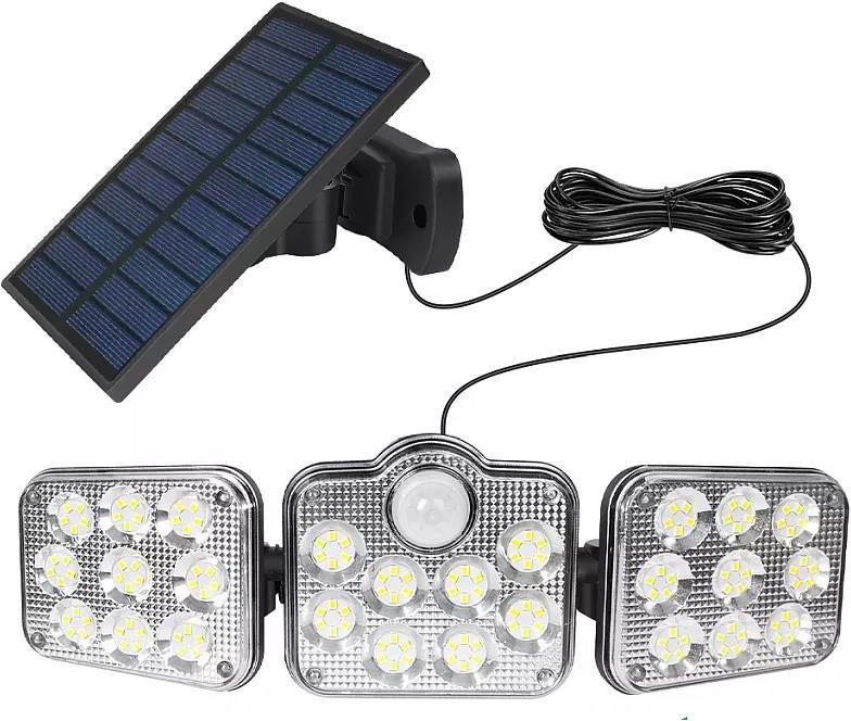 Solarna lampa zewnętrzna, latarnia SSL-138 z pilotem, czujnikiem ruchu i zmierzchu. To całoroczna lampa solarna z 138 diodami led w trzech nastawnych panelach, przeznaczona do montażu na ścianie. Idealna do zastosowania na działkach, posesjach, parkingach, placach budowy, altanach, ogrodach, garażach. Wmontowany czujnik ruchu oraz czujnik zmierzchu. Lampa jest odporna na warunki atmosferyczne. Lampa solarna ścienna 138 led smd z 3 trybami pracy, posiada pilota zdalnego sterowania oraz czujnik ruchu i zmierzchu, IP65 jest wodoodporna. Zestaw jest rozdzielny oznacza to że panel słoneczny i źródło światła mogą być zamontowane w pewnej odległości od siebie, zapewnia to wzrost wydajności i rozszerza możliwości zestawu. Lampę wieszamy tam gdzie ma świecić, a panel w miejscu nasłonecznionym. Cechy: Wydajna lampa solarna z 138 diodami LED w trzech regulowanych panelach z oddzielnym panelem słonecznym to niewyczerpane źródło darmowej energii dla Twojego domu. Zamontuj ją w dowolnym miejscu - panel solarny możesz zawiesić w odległości do 5 metrów od lampy co daje spore pole manewru. Zredukuj koszty oświetlenia zewnętrznego, stawiając przy tym na ekologię - brak konieczności wymiany baterii. Dzięki wbudowanemu czujnikowi ruchu i zmierzchu będzie zapalać się wyłącznie w nocy i tylko wtedy, gdy lampa wykryje wokół siebie ruch. Specyfikacja produktu: Panel słoneczny: 5.5V 1.8W, Długość przewodu łączeniowego: około 5 metrów, Akumulator litowo-jonowy: 3.7V 2400mah akumulator (wbudowany), Stawka wodoodporność: IP65, Odległość wykrywania: 2-5 metrów, Kąt czujnika: 120 stopni, Czas indukcji: 20S, Temperatura barwowa: 6500K (białe zimne światło), Diody LED: 138 diod o wysokiej mocy, Czas ładowania: 6-8 godzin; Czas pracy: 8-12 godzin zależnie od trybu pracy, Kąt świecenia: 270 stopni, Bezpieczny materiał: ABS + PC, Długość życia: 50000 + godzin. Tryby pracy lampy - działają po zmroku: Tryb 1: 100% mocy, gdy wykryje ruch i wyłączy się po około 20 sekundach Tryb 2: 100% mocy, gdy wykryje ruch i 10% mocy po około 20 sekundach Tryb 3: to 20% aż bateria padnie lub do świtu. Lampa jest łatwa w obsłudze i instalacji. Zestaw zawiera: lampę ścienną, z wbudowaną baterią, czujnikiem ruchu, panel słoneczny z przewodem łączeniowym o długości 5 metrów, pilot zdalnego sterowania, uchwyty do mocowania na ścianie, kołeczki rozporowe do mocowania lampy i śrubki do uchwytu. Wskazówki: Na czas ładowania i czas świecenia wpływa intensywność światła słonecznego, położenie geograficzne, sezon i inne czynniki, Panel słoneczny powinien być zainstalowany w słonecznym miejscu. Ta lampa słoneczna nie zaświeci się, gdy jest widno, więc przykryj panel słoneczny podczas testowania.