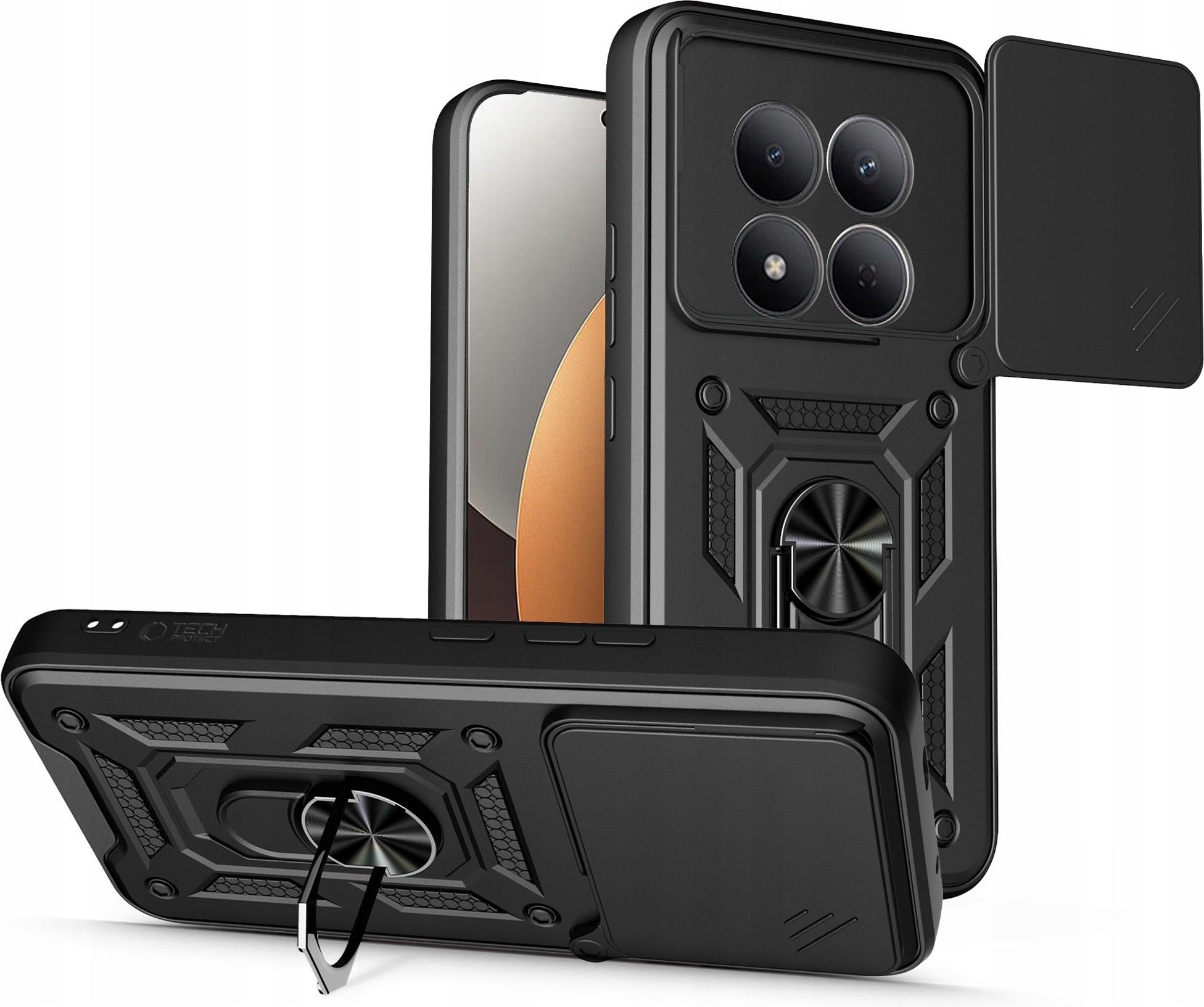 Tech-Protect Camshield Pro Do Xiaomi Redmi Note 15 Pro Plus 5G Wersja kolorystyczna: Black (czarna) Materiał: TPU, PC Podwyższone ranty wokół ekranu i aparatu Ochronny slider na aparat Osłony na przyciski Obrotowy pierścień 360° Powierzchnia odporna na odciski palców i smugi Pokrowiec spełnia standard odporności Military Grade Wysoka odporność na ścieranie i uszkodzenia mechaniczne Lekka konstrukcja Kod produktu: 5906302352876 Etui kompatybilne ze szkłami o wymiarach mniejszych niż (długość x szerokość): 16,00 x 7,45 cm Ochronny case na smartfona Zapomnij o rysach i wgnieceniach – z Tech-Protect CamshieldPro Twój telefon zyskuje najlepszą ochronę. Hybrydowa konstrukcja z trwałego poliwęglanu oraz elastycznego TPU skutecznie absorbuje wstrząsy i upadki. Unikalny slider na aparat chroni obiektyw przed zarysowaniami, a sam case jest perfekcyjnie dopasowany do telefonu. Nie musisz już wybierać między bezpieczeństwem a wygodą – tutaj masz jedno i drugie w komplecie. Etui spełnia wymogi standardu odporności Mil-Grade. Plecki z ringiem 360° i funkcją podstawki Etui wyposażono w obrotowy pierścień 360°, który zaskakuje swoją praktycznością. Możesz go użyć jako wygodnego uchwytu na palec, podstawki do oglądania filmów lub nawet uchwytu do magnetycznego stojaka w samochodzie. Całość łączy nowoczesny design i wysoką funkcjonalność, byś mógł korzystać z telefonu dokładnie tak, jak tego potrzebujesz. Z takim pokrowcem Twój dzień nabiera tempa! Mocny pokrowiec z magnetycznym mocowaniem Zostało stworzone z myślą o wyzwaniach codzienności. Solidna konstrukcja zapewnia niezawodną ochronę, niezależnie od sytuacji. Precyzyjne wykonanie sprawia, że telefon zachowuje pełną funkcjonalność, a wszystkie przyciski i porty są łatwo dostępne. Tech-Protect Camshield Pro to doskonały wybór dla każdego, kto ceni praktyczne rozwiązania na najwyższym poziomie. Magnetyczne mocowanie do uchwytów samochodowych sprawia, że jazda stanie się przyjemniejsza.