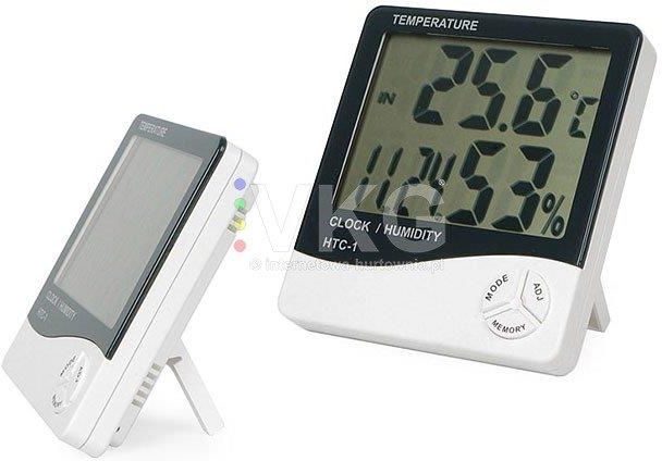 HIGROMETR TERMOMETR CZUJNIK POKOJOWY ZEGAR BEZPRZEWODOWA STACJA POGODY LCD STACJA POGODY ELEKTRONICZNY TERMOMETR/HIGROMETR Wielozadaniowa stacja pogody, z czytelnym wyświetlaczem LED to nowoczesne urządzenie, które pozwala na kontrolowanie temperatury w pomieszczeniu każdego dnia. Zadbaj o optymalną temperaturę pomieszczeń, w których się znajdujesz i poczuj się lepiej. Mała stacja pogody posiada duży wyświetlacz oraz jest prosta w obsłudze. Jej przeznaczenie jest uniwersalny, idealne do domu mieszkania biura SPECYFIKACJA TECHNICZNA Model: HTC 1 10139555874 Materiał: ABS Komunikacja: bezprzewodowa Zasilanie: bateryjne (1 x AAA) Wyświetlacz: LED, podświetlany Termometr: TAK, wbudowany Wymiary urządzenia: 10 x 11 x 2,2 cm Wymiary wyświetlacza: 7,5 x 6 cm Zakres mierzonych temperatur: 0° C - 50° C (-32° F - 122° F) Zakres mierzonej wilgotności powietrza: 10% - 99% RH Dokładność mierzonych temperatur +/- 1° C Dokładność mierzonej wilgotności powietrza +/- 5% Wyświetlanie temperatury w stopniach C/F Funkcje dodatkowe: budzik, pomiar temperatury wewnętrznej, pomiar wilgotności, zegar, możliwość zapamiętania najwyższej i najniższej temperatury, wilgotności powietrza. PRODUKT POSIADA CERTYFIKAT CE ✔️✔️✔️ FUNKCJE STACJI POGODY WYŚWIETLANIE TEMPERATURY - wyświetlacz może wskazać także temperaturę minimalną i maksymalną. WILGOTNOŚĆ - aktualna wilgotność (oraz minimalna i maksymalna po naciśnięciu MEMORY). WYŚWIETLANIE GODZINY - stacja wyświetla godzinę lub dzień i miesiąc. FUNKCJA ALARMU - użyj produktu do ustawienia alarmu (budzika). ZMIANA ºF do ºC - możesz zmienić tryb wyświetlania temperatury na ºF lub ºC. WYŚWIETLACZ LED Stacja pogody posiada spory i czytelny wyświetlacz LED, który umożliwia łatwy dostęp do odczytania pomiarów. Główne informacje są dostępne dla wszystkich użytkowników w sposób przejrzysty. Wyświetlacz wskazuje temperaturę wewnątrz pomieszczenia, datę lub godzinę, a także wilgotność powietrza. Wyświetlanie czasu może się odbywać w dwóch trybach: 12/24h. Dodatkowo urządzenie zapamiętuje najwyższą i najniższą temperaturę oraz wilgotność powietrza. NOWOCZESNY WYGLĄD Postaw na funkcjonalność i dobry look. Nowoczesne urządzenie w uniwersalnych czarno-białych barwach wpasuje się we wnętrze każdego pomieszczenia. Możesz je umieścić w dowolnym miejscu, nie tylko postawić ale i powiesić na ścianie. Produkt posiada podpórkę, aby zadbać o jego stabilizację na podłożu. Mała, dyskretna stacja pogody będzie idealnym gadżetem dnia codziennego w przestrzeni domowej czy w biurze. PRECYZYJNE POMIARY Prezentowana stacja pogody dba o precyzyjne pomiary w trosce o Twoje zdrowie i dobre samopoczucie. Za sprawą higrometru, który dokonuje pomiarów wilgotności powietrza w pomieszczeniu na wyświetlaczu możesz kontrolować stan parametrów. Optymalna temperatura w pomieszczeniach to ważna kwestia. Zakres mierzonych temperatur: 0° C - 50° C (-32° F - 122° F) Zakres mierzonej wilgotności powietrza: 10% - 99% RH Dokładność mierzonych temperatur +/- 1° C Dokładność mierzonej wilgotności powietrza +/- 5% W ZESTAWIE Elektroniczna stacja pogody