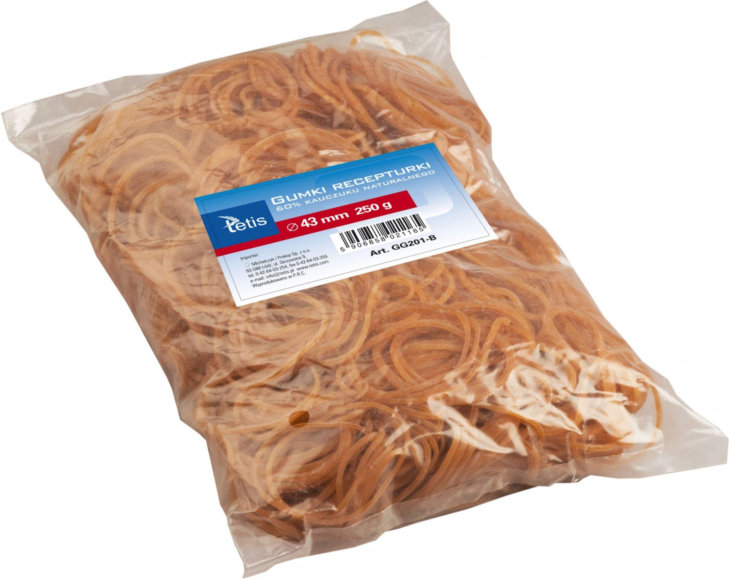 GUMKI RECEPTURKI 250G GG202-B Producent: TETIS Opakowanie: FOLIA EAN: 5906858022209 Cechują sie duzą elastycznością. Zawierają do 60% kauczuku naturalnego. Opakowanie: pudelko 15 g / woreczek 50 g/ woreczek 250 g / woreczek 500 g / woreczek 1000 g