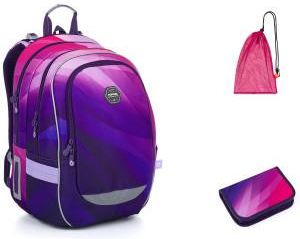 Zestaw szkolny składający się z plecaka, piórnika i worka Komplet szkolny składa się z produktów: CODA 24007 - Plecak szkolny różowa fala, PENN 24007 - Piórnik szkolny z dwoma skrzydłami, ZUZA 19046 - Worek na obuwie