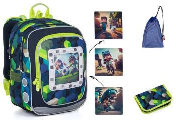 Zestaw szkolny składający się z plecaka, piórnika i worka Komplet szkolny składa się z produktów: ENDY 24015 - Lekki plecak Minecraft World, PENN 24015 - Piórnik szkolny z dwoma skrzydłami, ZUZA 19046 - Worek na obuwie