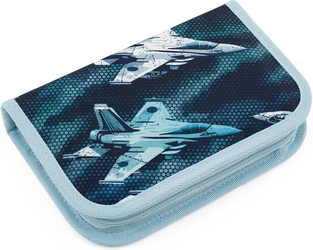 Jednokomorowy piórnik szkolny z dwoma skrzydłami. Posiada 21 elastycznych klasycznych uchwytów na kredki, długopisy, trzy szerokie uchwyty na linijkę, i dwa duże uchwyty na temperówkę, gumkę. Piórnik jest bez wyposażenia. Na jednej klapce piórnika znajduje się przezroczysta przegródka z planem …