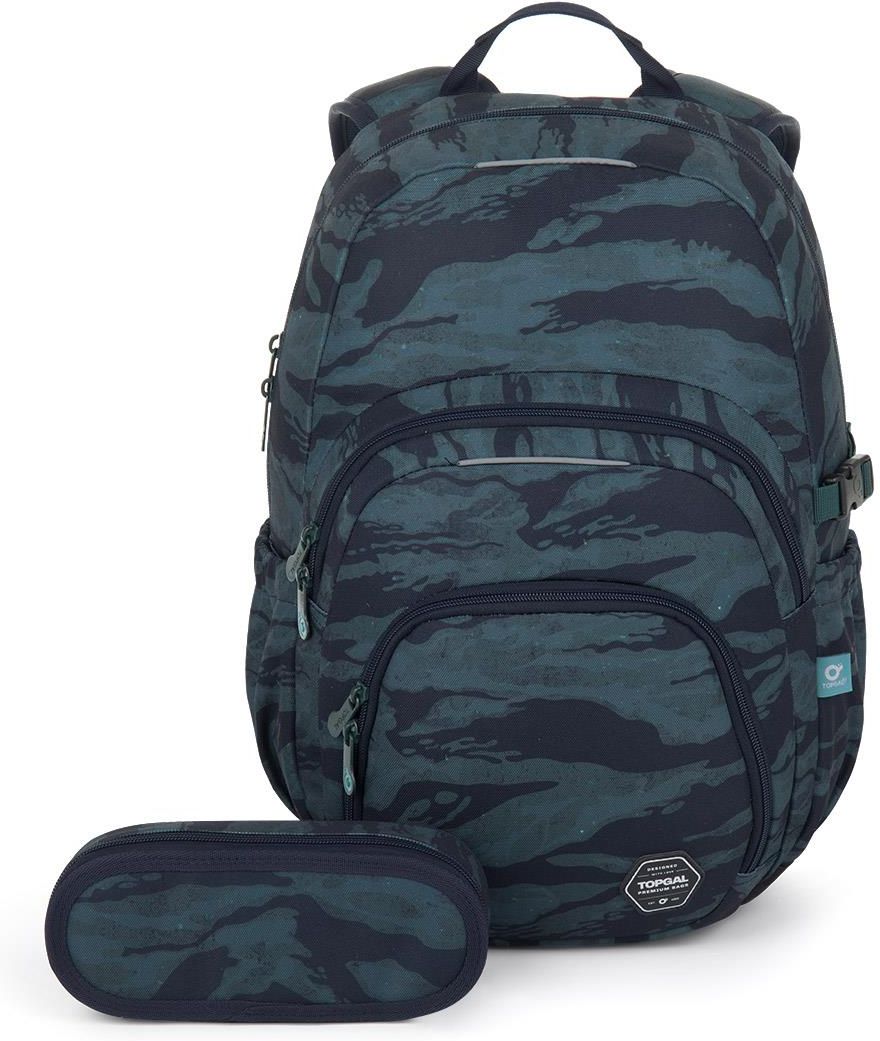 Zestaw dla młodzieży składający się z plecaka i piórnika etui. Komplet szkolny składa się z produktów: SKYE 25038 - Plecak młodzieżowy zielone moro, ETUE 25038 - Piórnik szkolny