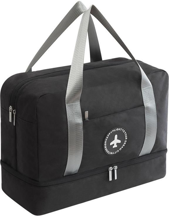Torba/plecak bagaż podręczny z paskiem Wizzair ----------------------------------------------------------- Dostępność: Wys. w 24h Kolor: czarny ----------------------------------------------------------- Pasek na ramię: Tak Długość paska: 130 cm Wymiary zewnętrzne: 40 x 30 x 20 cm Pojemność: 21 l Opis produktu ------------------------------------------------------------------------ Dwukomorowa torba podróżna, która doskonale sprawdzi się jako bagaż podręczny. Została został wykonany z trwałego i odpornego na deszcz materiału. Pierwsza komora, z przodu torby to bardzo pojemna, wodoodporna kieszeń, do której bezpiecznie zapakujesz wszystkie kosmetyki lub wilgotne ręczniki bez obawy o zamoknięcie reszty rzeczy. Druga równie pojemna komora z tyłu torby posiada małą kieszonkę zapinaną na zamek. Z przodu torby znajduje się mała kieszonka na podręczne rzeczy zapinana na zamek. Na dole torby umieszczono bardzo pojemną kieszeń, w której przechowasz np. buty lub większe rzeczy. Z tyłu torby znajduje się nylonowy pas, dzięki któremu można założyć plecak na rączkę torby lotniczej. Torba posiada dwa uchwyty, dzięki czemu można ją wygodnie przenosić w ręce. W zestawie znajduje się pasek o długości 130 cm. Można go przypiąć do torby na dwa sposoby: od góry, aby zawiesić torbę wygodnie na ramieniu, lub z tyłu torby, aby założyć na plecach jak plecak. Wytrzymały materiał ------------------------------------------------------------------------ Plecak wykonany jest z wytrzymałego, impregnowanego materiału, co sprawia, że jest nie tylko trwały, ale i wodoodporny Osobna kieszeń na buty ------------------------------------------------------------------------ Plecak posiada specjalną komorę na buty. Dzięki niej, można je łatwo odizolować od reszty ubrań. Jest to osobna komora zapinana na zamek. Pojemne wnętrze ------------------------------------------------------------------------ Torba posiada dwie obszerne komory. Do pierwszej można zapakować ubrania, natomiast druga wyposażona jest w wodoodporną podszewkę, idealnie nadającą się na kosmetyki. Będą one oddzielone od ubrań, więc nie ma obawy, że podczas podróży spotka nas niemiła niespodzianka. Dwie możliwości noszenia ------------------------------------------------------------------------ W zestawie znajduję się pasek o długości 130 cm. Można go przypiąć do torebki i nosić na ramieniu lub na plecach. Galeria produktu Torba/plecak bagaż podręczny z paskiem Wizzair ------------------------------------------------------------------------