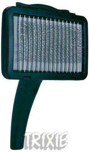 Delikatna pielęgnacja zewnętrznej i wewnętrznej warstwy futra Z grzebykiem czyszczącym Chromowana podstawa Wyjątkowo miękkie druciane włosie Z drewniana raczka Kolor wysyłamy losowo, preferowany kolor możesz wpisać w uwagach do zamówienia. Włos okrywowy i Podszerstek Rozmiary: S - 6x13 cm M - 9x13 cm