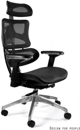 Wielogodzinna praca przy komputerze lub biurku bardzo szybko kończy się bólem pleców, głowy, skurczami nóg. Fotel ergonomiczny Ergotech to najlepsze rozwiązanie dla osób pracujących w pozycji siedzącej oraz uczących się przy biurku. Regulowane podłokietniki można ustawiać w każdym kierunku: góra-dół i przód-tył, można je także rozchylać na boki, dzięki czemu dopasujemy go do każdej osoby. Dodatkowo fotel do pracy przy komputerze Ergotech posiada mechanizm samoważący SYNCHRON. Wyjątkowy komfort fotela biurowego wynika także z możliwości regulacji wysokości i głębokości siedziska oraz wysokości oparcia i zagłówka. Przewiewność i dobre samopoczucie użytkownikowi fotela zapewniają tapicerowane siatką elementy: zagłówek, oparcie i siedzisko. Ergonomiczny fotel efektownie wygląda także za sprawą podstawy z kółkami wykonanymi z polerowanego aluminium lub mocnego tworzywa, dzięki czemu znosi on obciążenia nawet do 130 kg. - Regulowane podłokietniki góra-dół, przód-tył, wychylenie na boki- Regulacja wysokości i głębokości siedziska - Regulowana wysokość oparcia i zagłówka- Mechanizm samoważący SYNCHRON- Zagłówek, oparcie i siedzisko tapicerowane siatką- Podstawa jezdna wykonana z polerowanego aluminium lub mocnego tworzywa- 2 lata gwarancji- Maksymalne obciążenie 130 kg Krzesło spełnia normyPN-EN 1335-1:2004PN-EN 1335-2:2019PN-EN 1728:2012/AC:2013PN-EN 1022:2019