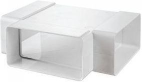 Trójnik poziomy systemu 100, wykonany z wysokiej jakości tworzywa sztucznego. Wykorzystywany do budowy instalacji wentylacyjnych w systemach płaskich kanałów wentylacyjnych.