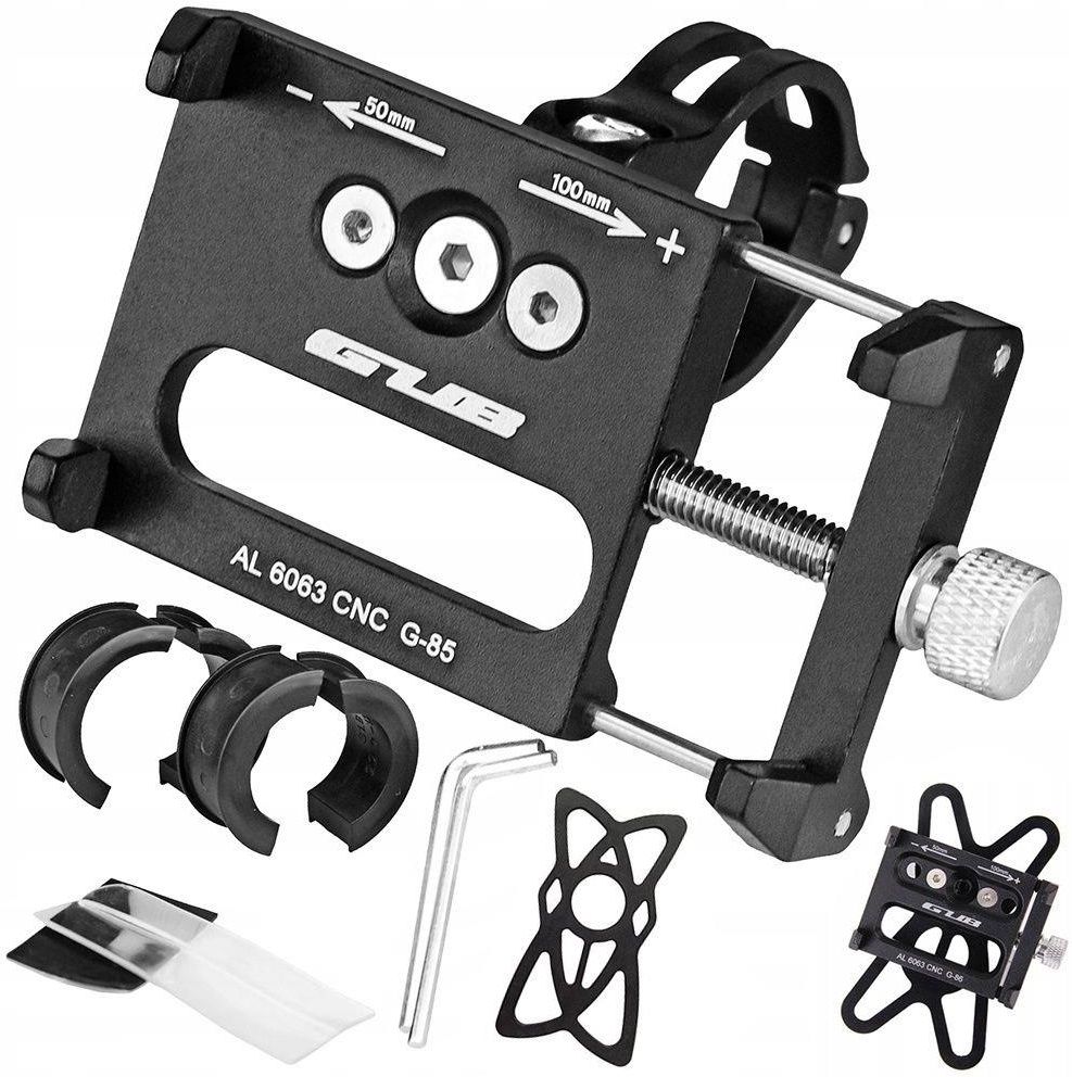 Uchwyt na kierownicę do telefonu GUB G-85 + OPASKA GUB_G-85_BAND ⭕ Model: GUB-85 ⭕ Typ: uchwyt na telefon ⭕ Materiał: aluminium ⭕ Kolor: czarny anodowany ⭕ Waga: ~ 100 g (z gumką) Uniwersalny aluminiowy uchwyt na telefon komórkowy GUB-85. Pozwoli na swobodne korzystanie z nawigacji, odtwarzacza muzyki, czy aplikacji treningowych. Prosty i szybki system montażu urządzenia w uchwycie - wystarczy ścisnąć telefon za pomocą jednej śruby. Dodatkowa gumka pozwoli na pewne zabezpieczenie telefonu np. podczas jazdy w trudnym terenie. Możliwość montażu na kierownicy przy mostku (31,8mm / 25,4mm) lub przy chwytach (22,2 mm) Dołączone adaptery pozwolą na idealne dopasowanie. Regulowana konstrukcja pomieści urządzenie o szerokości od 50 do 100 mm. Możliwość ustawienia orientacji poziomej lub poziomej podczas montażu uchwytu. Cztery ramiona, na które przykleja się osłony piankowe obejmują urządzenie i trzymają je na miejscu. Cechy produktu Uniwersalny uchwyt na telefon o szerokości od 50 do 100 mm Lekka aluminiowa konstrukcja Możliwość montażu w orientacji pionowej, lub poziomej Dodatkowa gumka zabezpieczająca Czteropunktowe mocowanie telefonu (nakładki piankowe na ramiona) Śruby i kluczyki do montażu w zestawie