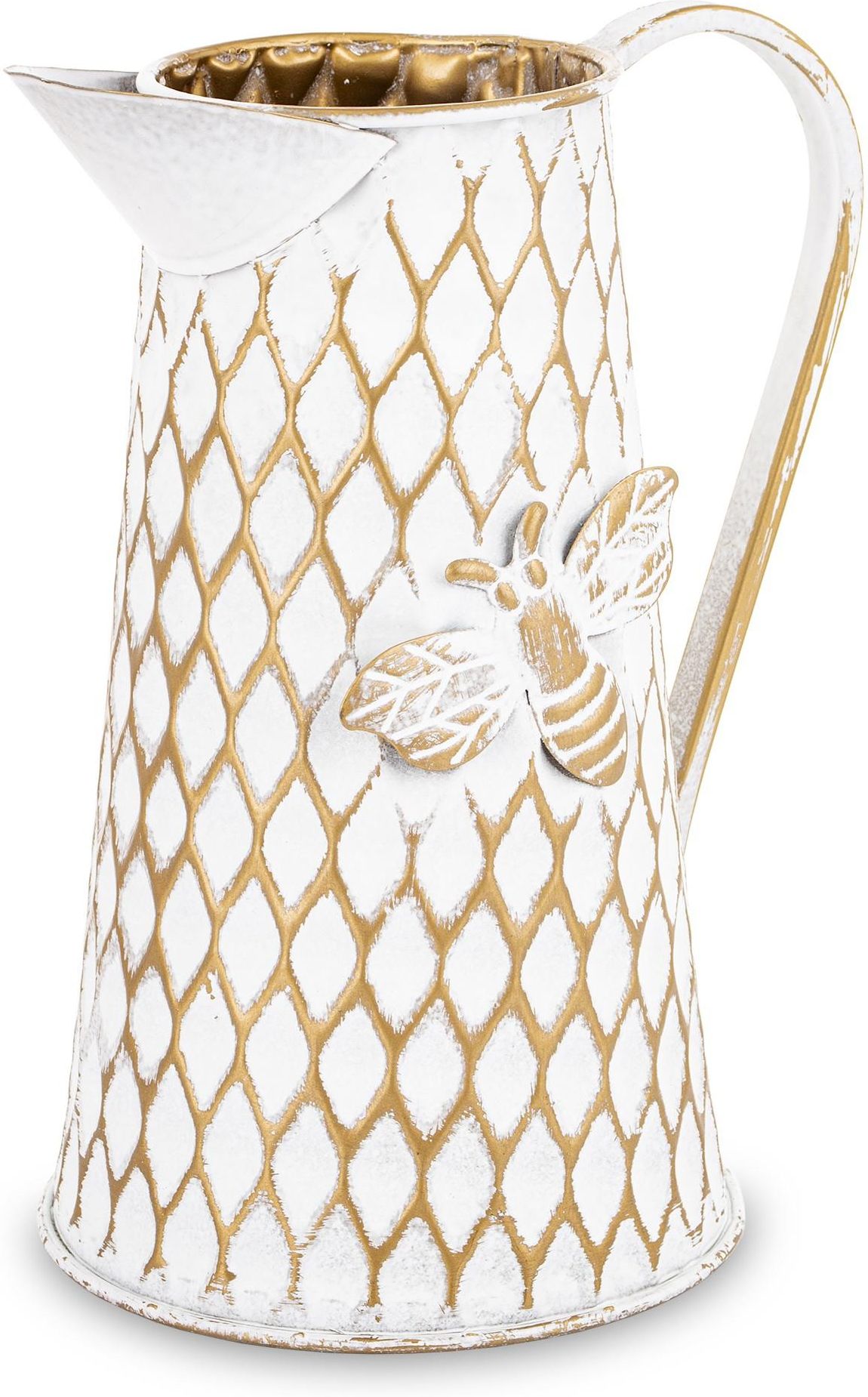 Wazon Metaloplastyka / Dekoracje Ogrodowe Rozmiar: 26x20,5x15,5 Pakowanie: 6 Waga: 0.64 kg Materiał: metal Kolor: biały, złoty