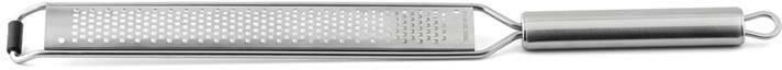 Weis - Tarka strug drobne oczka Gourmet Tarka Gourmet w całości wykonana jest z wysokiej jakości stali nierdzewnej. Powierzchnia trąca posiada ostrza, które zostały naostrzone przy użyciu nowoczesnej metody, jakim jest zaostrzanie krawędzi laserem. Gwarantuje to niebywałą i długotrwałą ostrość, co z kolei przekłada się na efektywność ścierania. Prezentowana tarka posiada średniej wielkości ostrza, które są doskonałe do ścierania twardego sera, przypraw korzennych i skórki z cytrusów. Komfort pracy poprawia antypoślizgowy wspornik, który pozwala wygodnie oprzeć ją na blacie podczas ścierania. Ergonomiczna, stalowa rękojeść zakończona jest otworem, umożliwiającym przechowywanie tarki na haczyku. Do tarki dołączona jest osłona zabezpieczająca ostrze. Tarkę bardzo łatwo jest utrzymać w czystości, można ją myć w zmywarce, jednak rekomendujemy mycie ręczne. Wymiary: 30 cm x 6,5 cm x 2 cm.