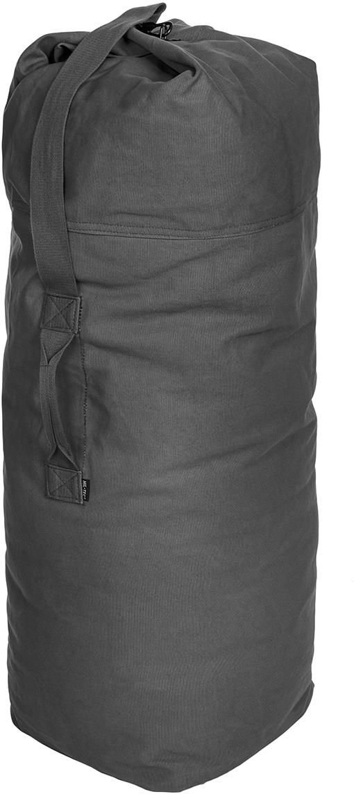 Wytrzymały worek marynarski o pojemności 95 litrów . Wykonany z trwałego płótna żeglarskiego Canvas - 100% bawełna naturalna. Materiał ten nie przyjmuje brudu, zabezpiecza przed wilgocią, jest odporny na przecięcia i rozdarcia. Kołnierz worka zapinany jest metalową klamrą ze stali nierdzewnej. Nylonowe szwy i kilkukrotne przeszycia w newralgicznych miejscach dodatkowo wzmacniają i zabezpieczają torbę. Wygodny uchwyt transportowy umożliwia komfortowe przenoszenie torby w pozycji poziomej. Po złożeniu worek zajmuje niewiele miejsca. Dane techniczne Kolor: czarny Materiał: bawełna, poliester Pojemność: 95 litrów Wymiary: 1050 × 300 × 300 mm Waga: 1330 g Producent: Mil-Tec, Niemcy